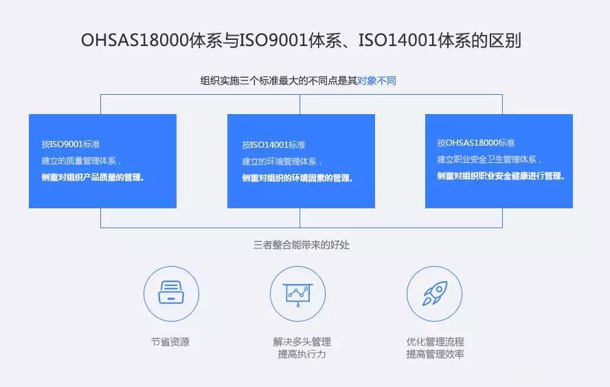 三体系认证是指ISO9001认证、ISO14001认证、OHSAS18001认证。它们均是组织全面管理的重要组成部分,分别从不同的侧面规范组织的活动和行为