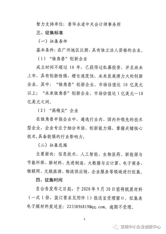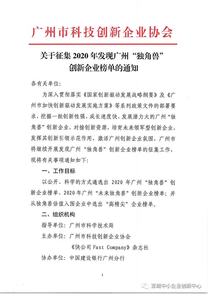 附件:1.2020年发现广州“独角兽”创新企业榜单征集表