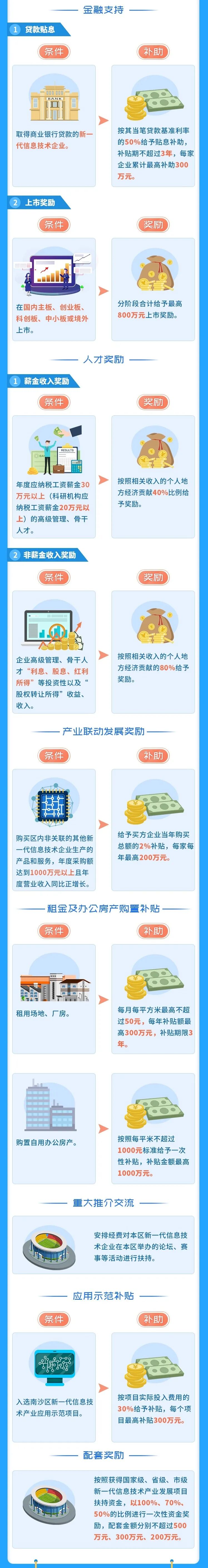 在南沙区注册的新一代信息技术企业,具体包括新型显示、集成电路、新一代信息通信(含5G、量子通信、北斗)、新一代互联网、第三代半导体、工业互联网、车联网及物联网、云计算及大数据、新一代信息技术服务业、区块链等领域企业。