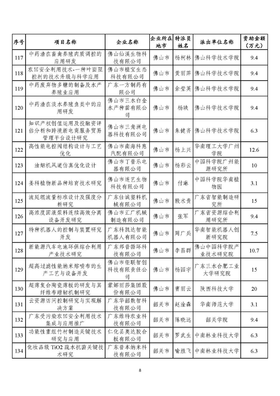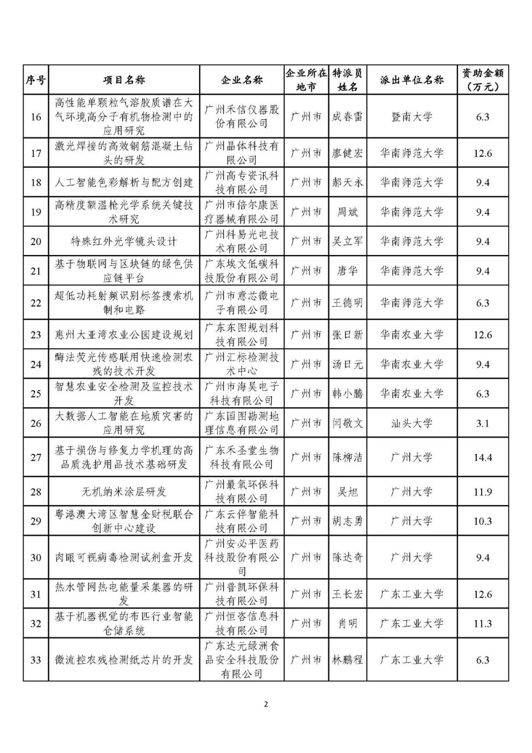 经查实,《不饱和单双甘油酯新型高效包埋微胶囊技术开发》等8个项目的企业科技特派员已获得2020年广东省农村科技特派员专项资助(详见附件2),不再重复资助。