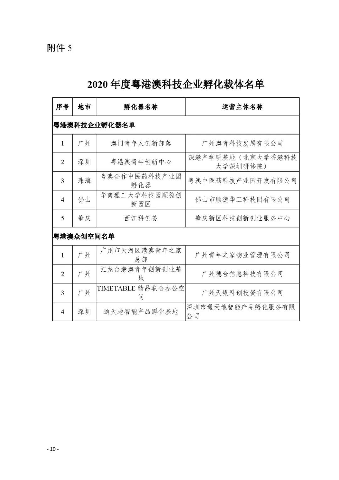 为引导科技企业孵化载体高质量发展,发挥省级科技企业孵化载体的示范引导作用,落实《广东省科技企业孵化载体管理办法》(粤科高字〔2020〕114号)文件精神,根据《广东省科学技术厅关于开展2020年度省级众创空间科技企业孵化器认定工作的通知》(粤科函高字〔2020〕361号)、《广东省科学技术厅关于组织申报2019~2020年度广东省科技孵化育成体系高质量发展专项项目的通知》的相关标准和要求,经各地科技主管部门审核推荐,省科技厅组织专家评审,现将确定为广东省科技企业孵化载体的46家众创空间、38家科技企业孵化器、3家科技企业加速器、1家国际化众创空间、5家粤港澳科技企业孵化器及4家粤港澳众创空间予以公布(详见附件)。
