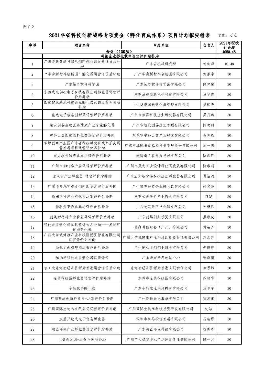 2.2021年省科技创新战略专项资金(孵化育成体系)项目计划拟安排表