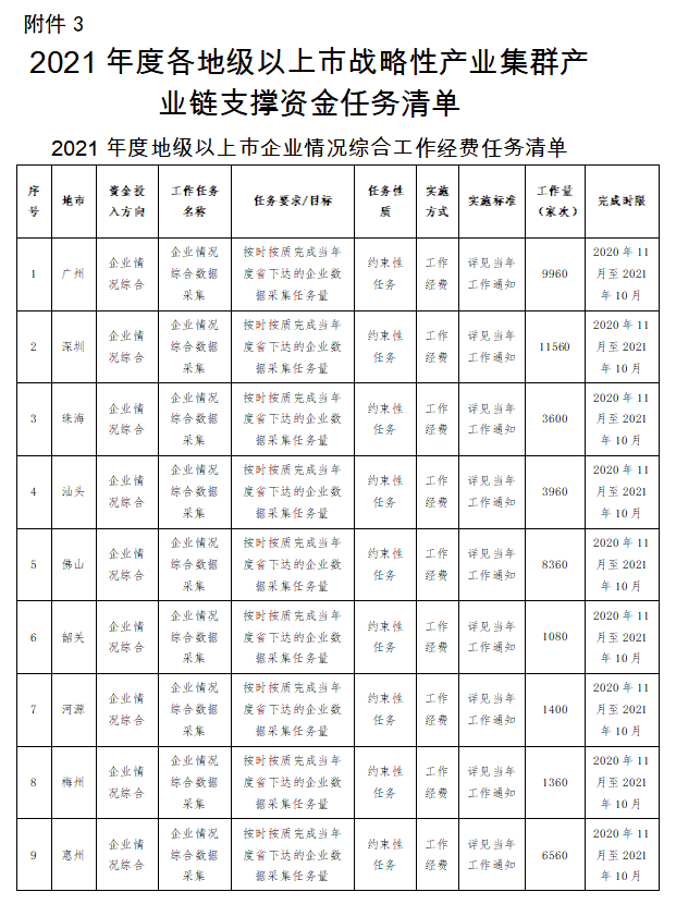 广东省工业和信息化厅关于下达2021年促进经济高质量发展专项资金(工业企业转型升级-战略性产业集群产业链支撑)安排计划的通知