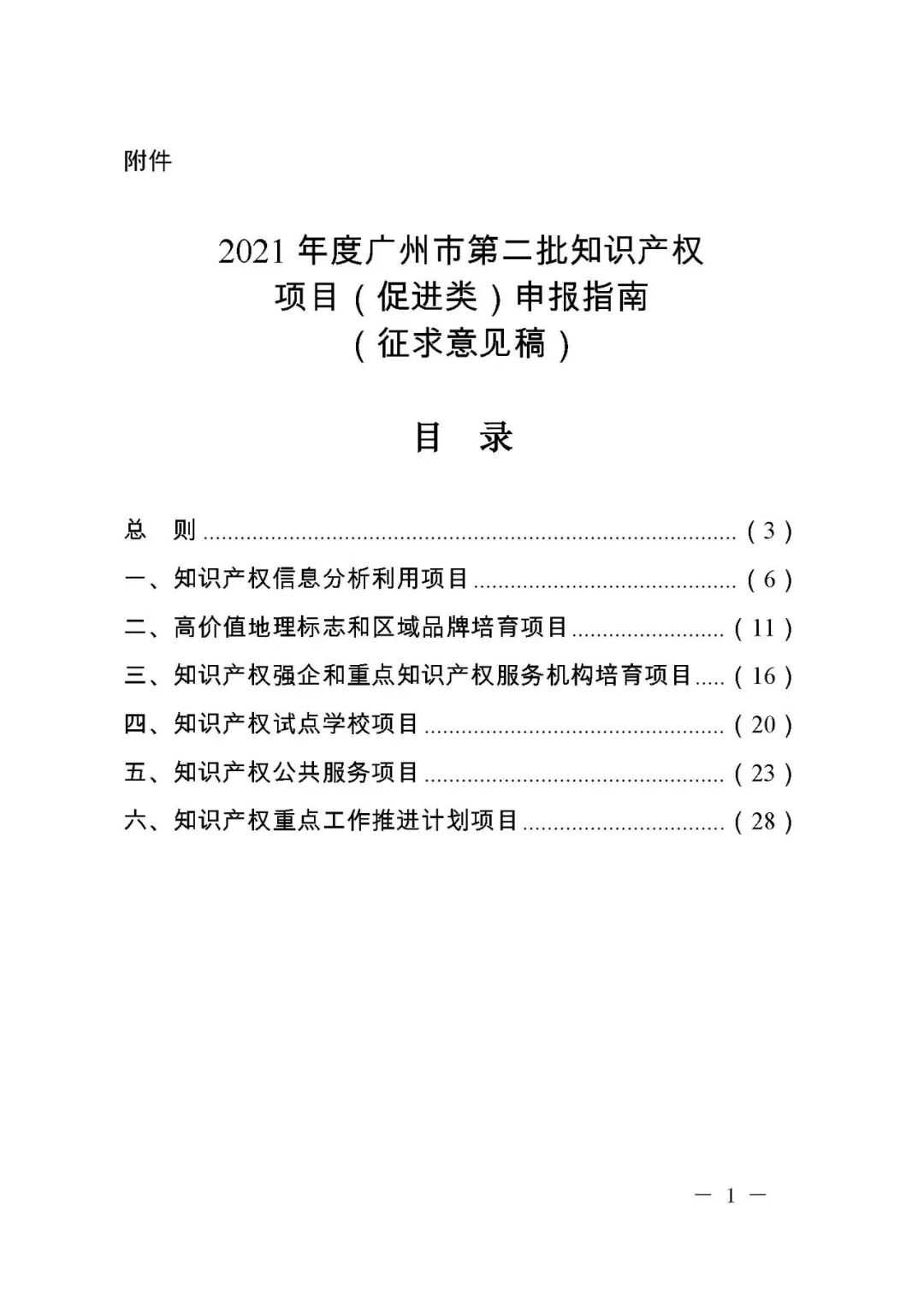 为做好2021年广州市第二批知识产权项目(促进类)申报工作,现向社会公开征求《2021年度广州市第二批知识产权项目(促进类)申报指南(征求意见稿)》意见。征求意见反馈截止时间为2021年4月27日(星期二),具体途径如下: