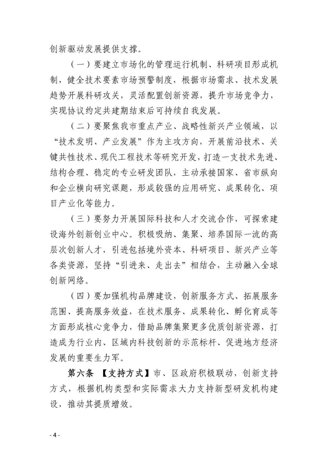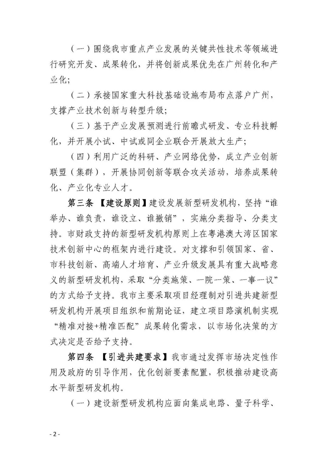 为贯彻落实科技部《关于促进新型研发机构发展的指导意见》(国科发改〔2019〕313号)、《广东省人民政府印发关于进一步促进科技创新若干政策措施的通知》(粤府〔2019〕1号)、《广州市人民政府关于印发进一步加快促进科技创新政策措施的通知》(穗府规〔2019〕5号)精神,围绕《粤港澳大湾区发展规划纲要》中对广州创新发展的定位和要求,深入实施创新驱动发展战略,进一步推进广州市合作共建新型研发机构的建设发展,市科技局研究制订了《关于促进合作共建新型研发机构高质量发展的意见》(详见附件)。