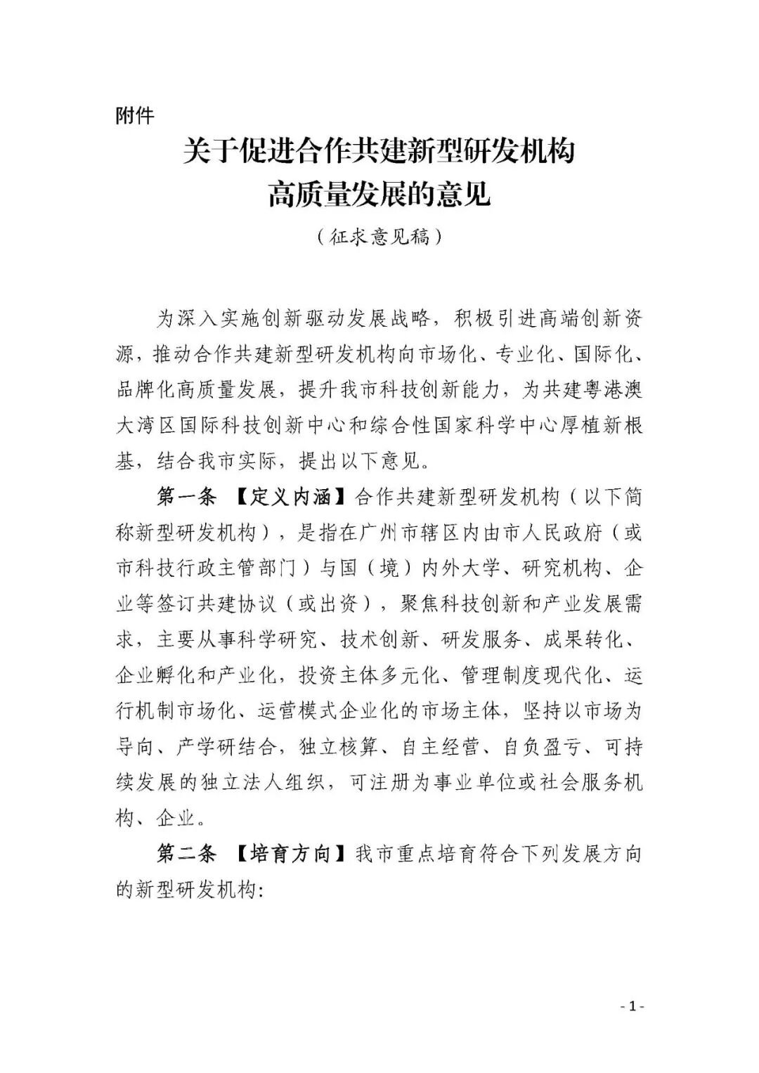 附件:关于促进合作共建新型研发机构高质量发展的意见(征求意见稿)