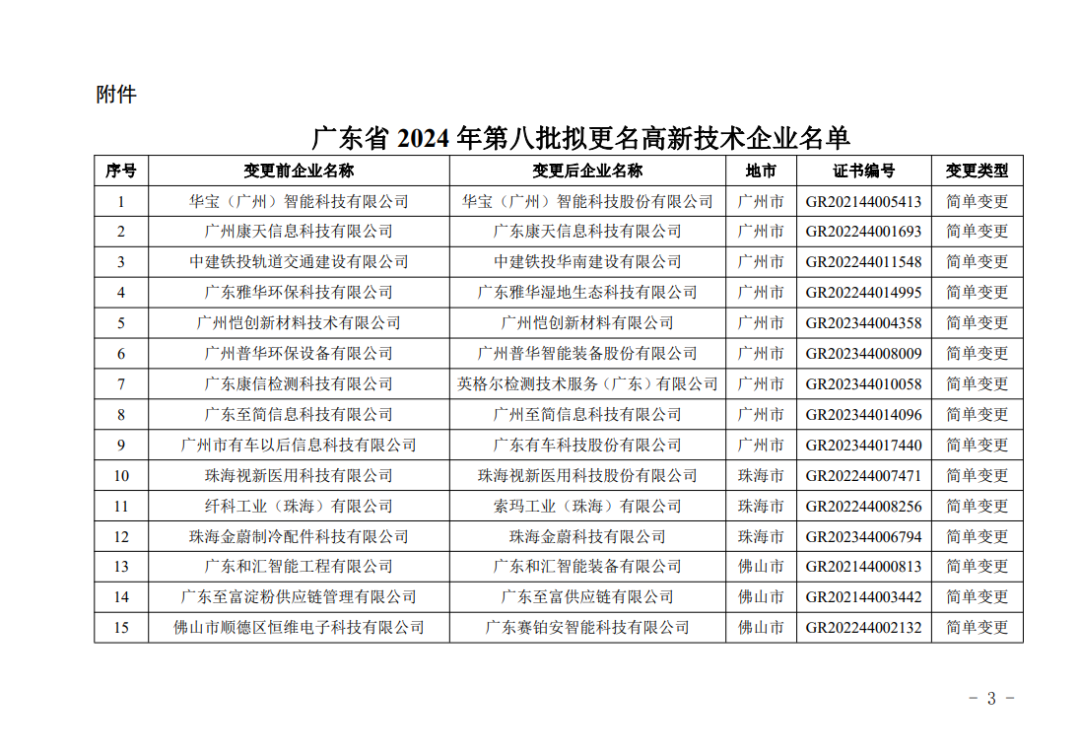 附 件:广东省2024年第八批拟更名高新技术企业名单