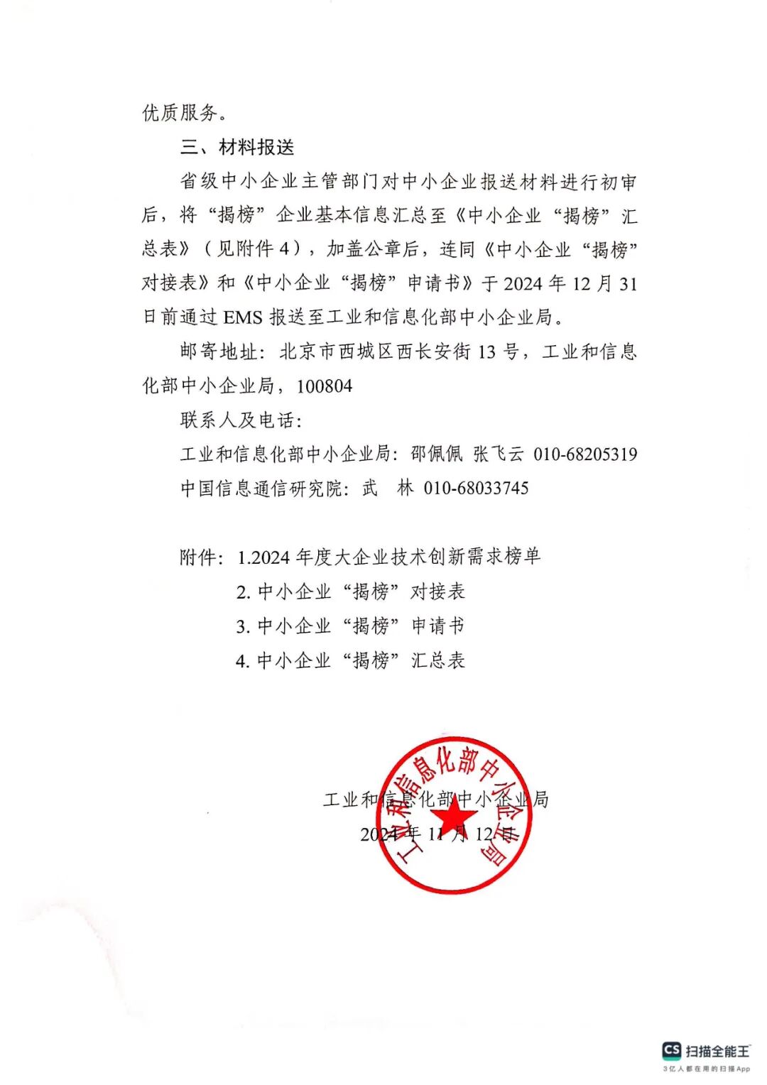 1.工业和信息化部中小企业局关于组织开展2024年度中小企业“揭榜”工作的通知