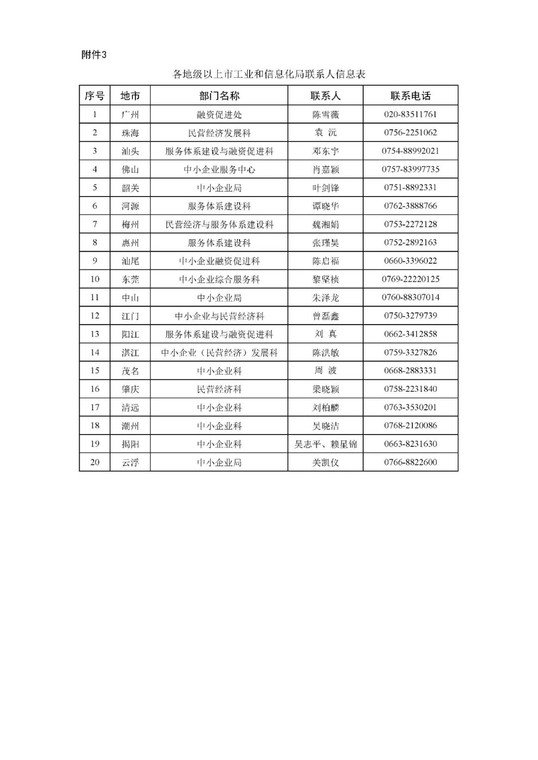 3. 各地级以上市工业和信息化局联系人信息表