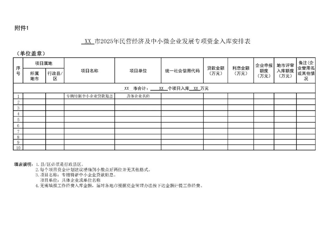 1. 2025年民营经济及中小微企业发展专项资金入库安排表