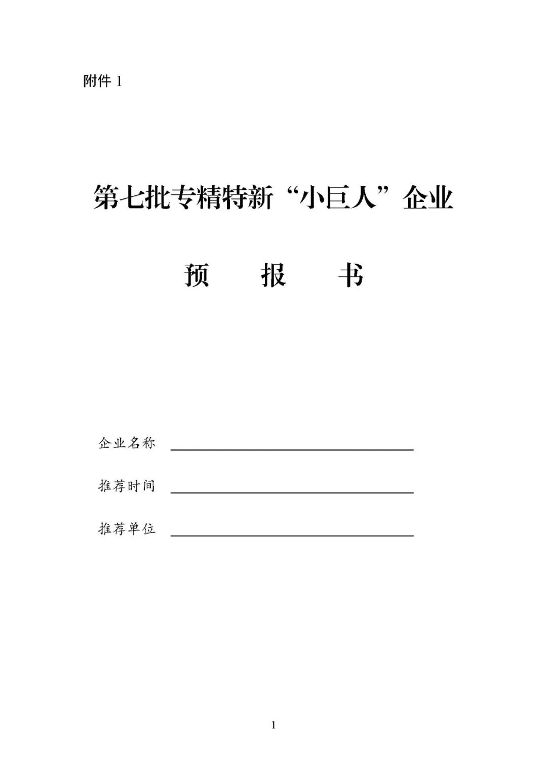 附件1:第七批专精特新“小巨人”企业预报书.doc