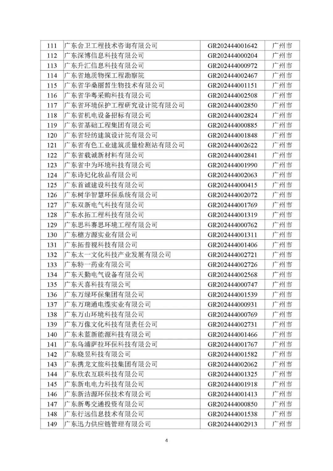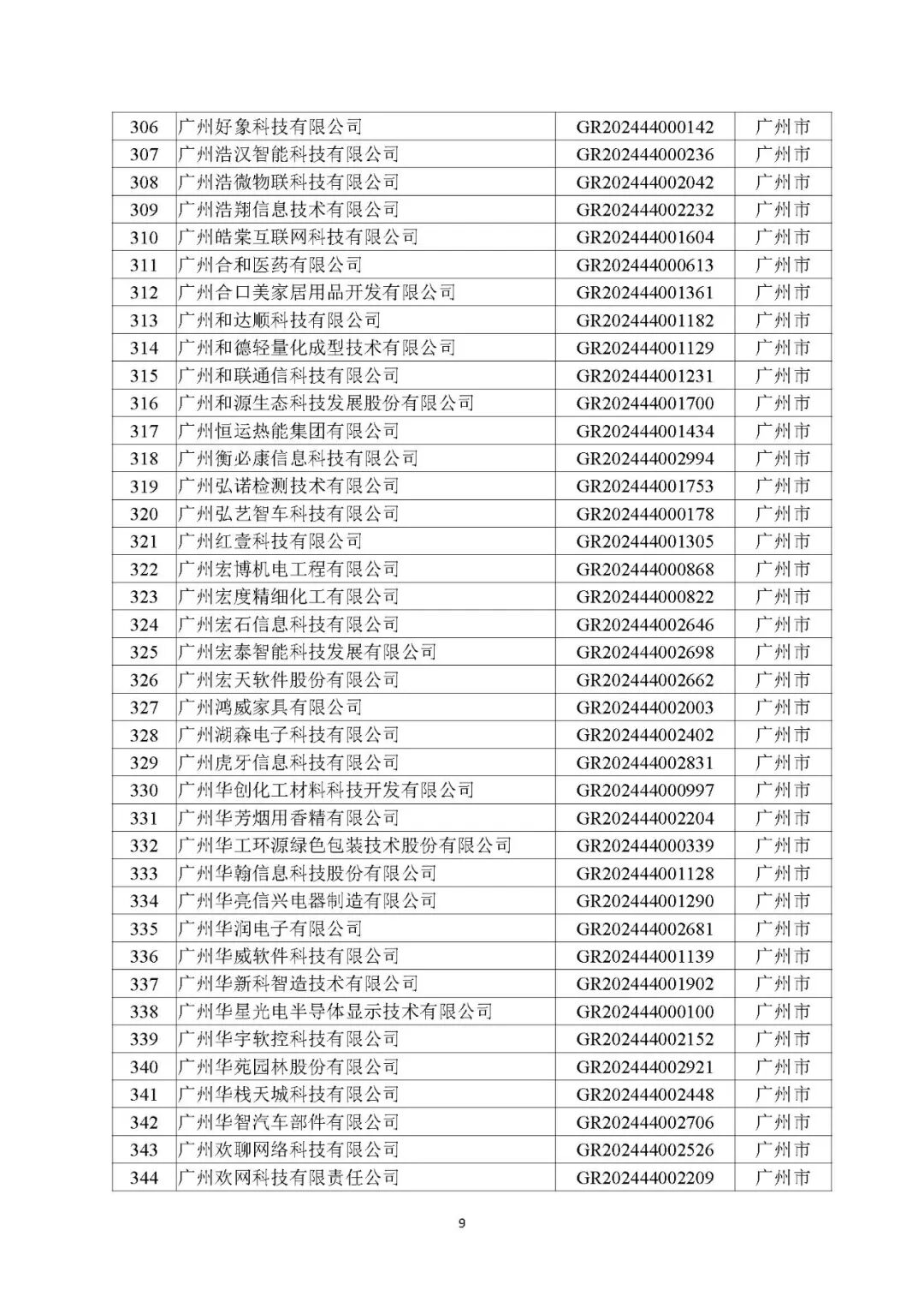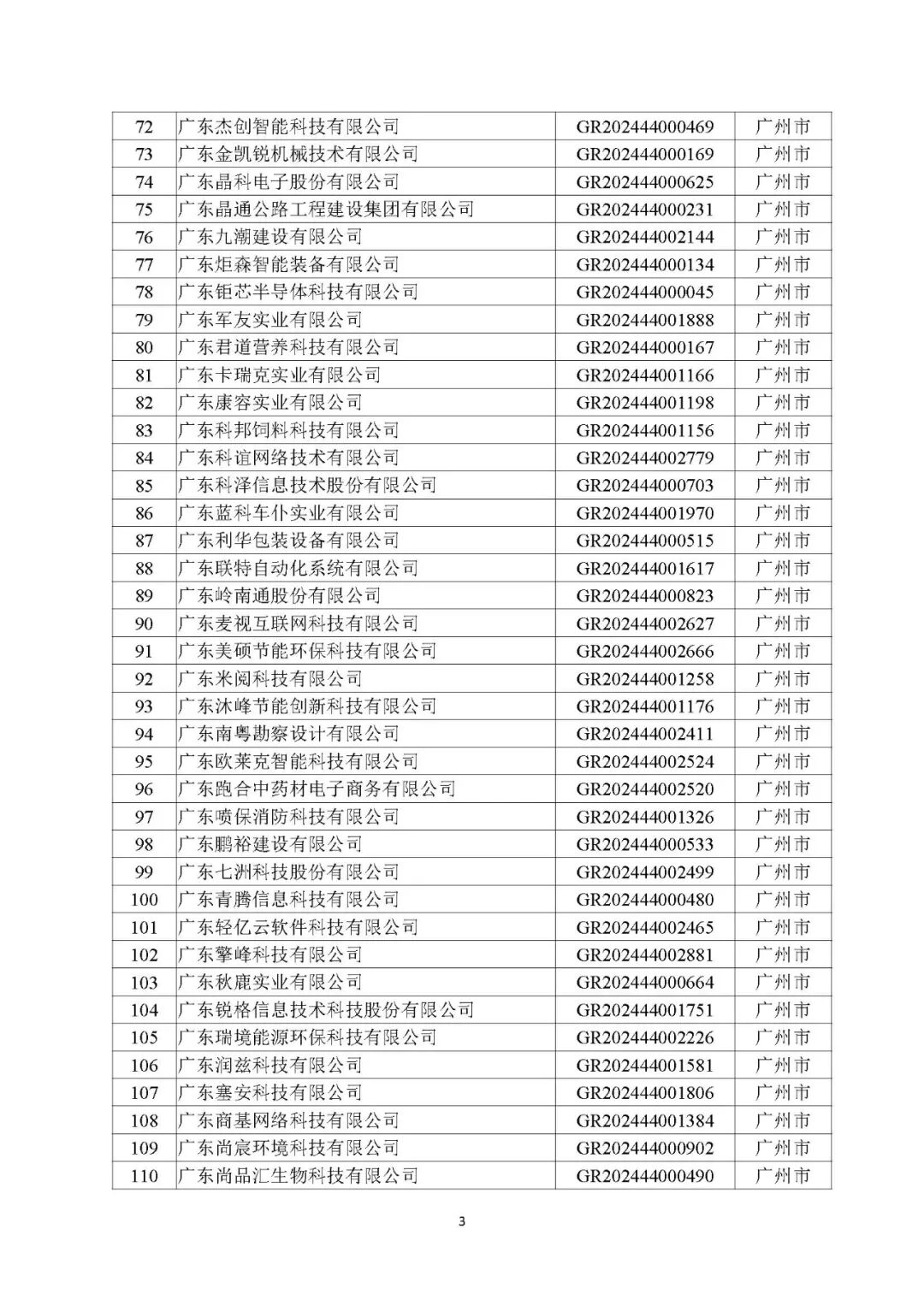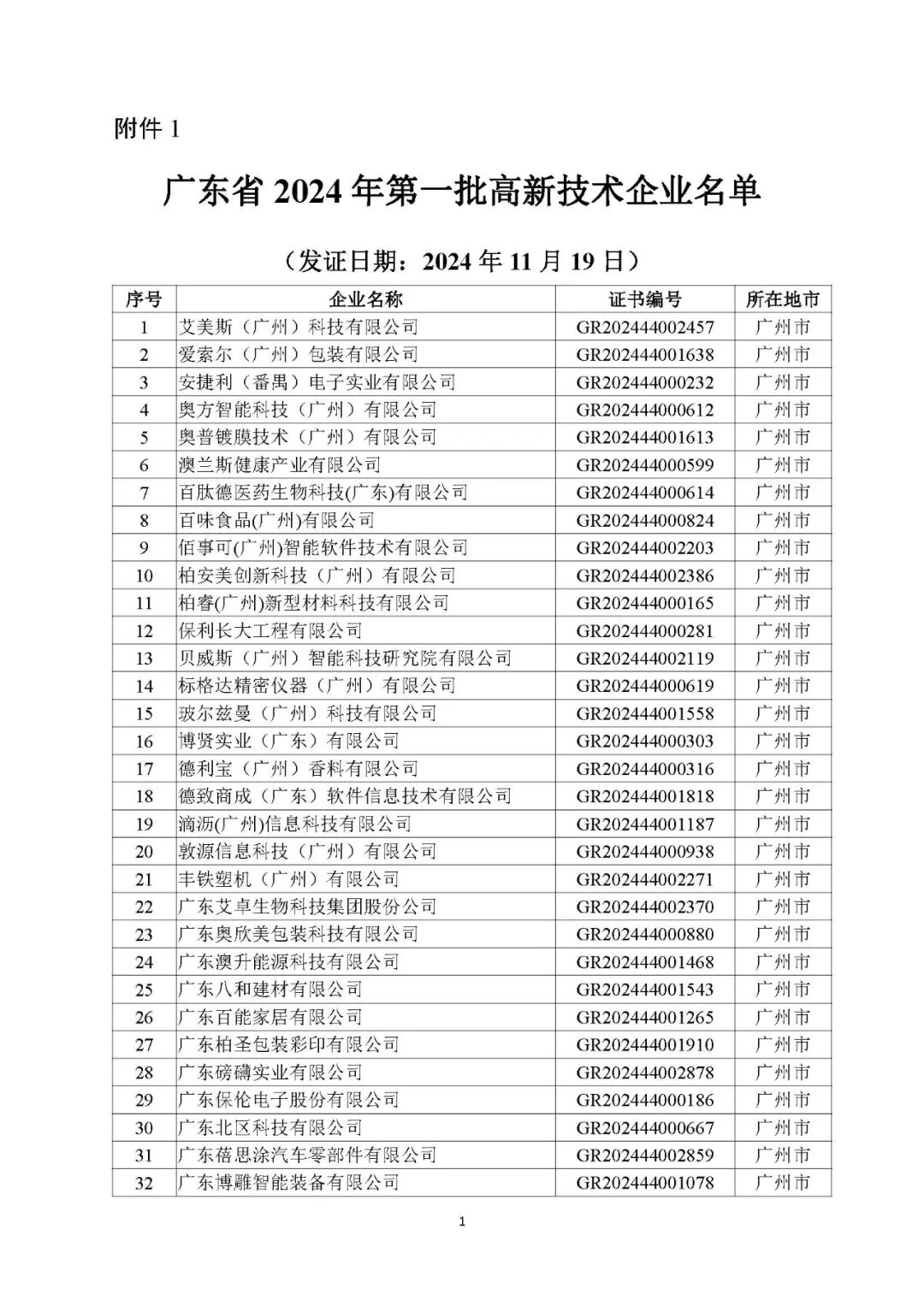 根据《科技部 财政部 国家税务总局关于修订印发〈高新技术企业认定管理办法〉的通知》(国科发火〔2016〕32号)和《科技部 财政部 国家税务总局关于修订印发〈高新技术企业认定管理工作指引〉的通知》(国科发火〔2016〕195号)有关规定,经企业申报,广东省高新技术企业认定管理工作领导小组办公室组织认定,并报全国高新技术企业认定管理工作领导小组办公室备案,2024年第一批2995家企业被认定为高新技术企业(名单见附件1)。请各有关单位做好高新技术企业证书发放工作,领取证书联系电话详见附件2。