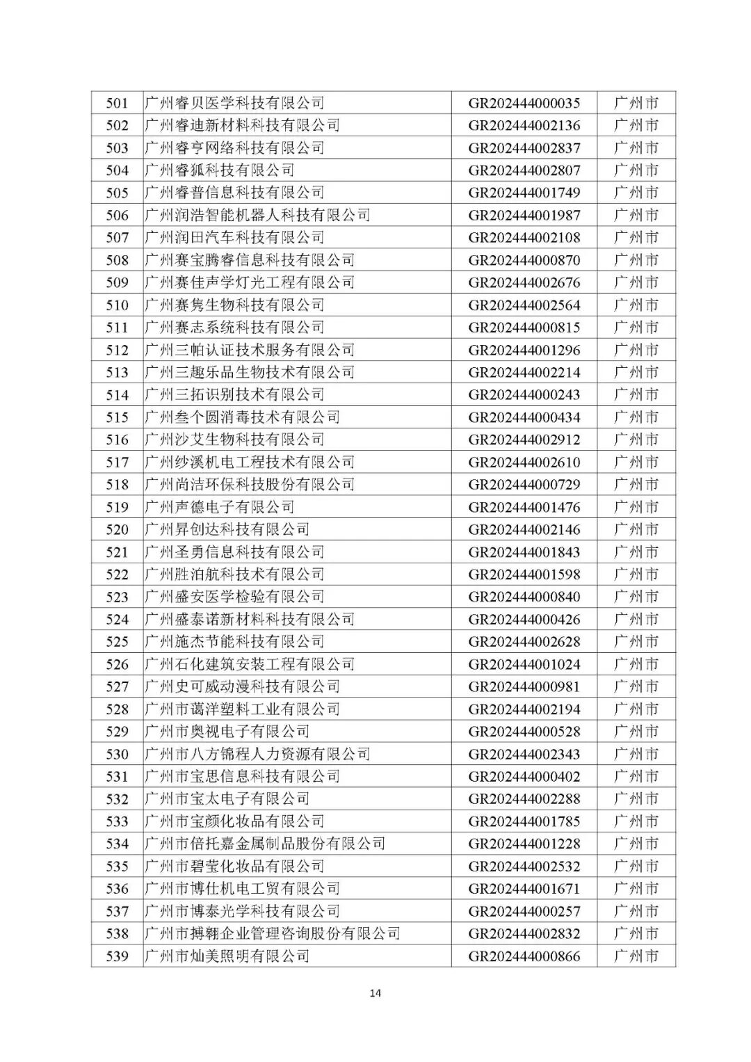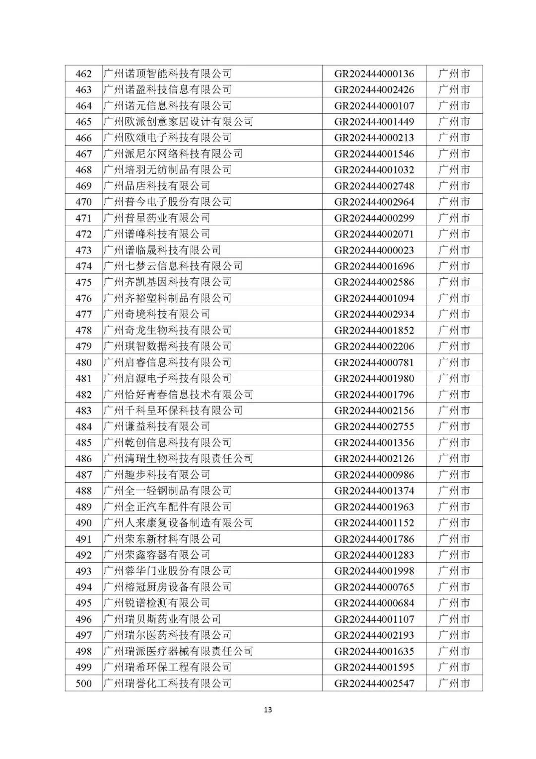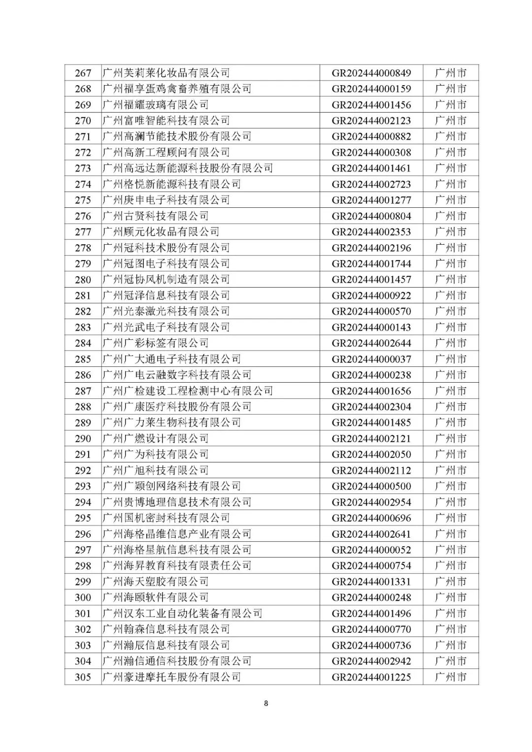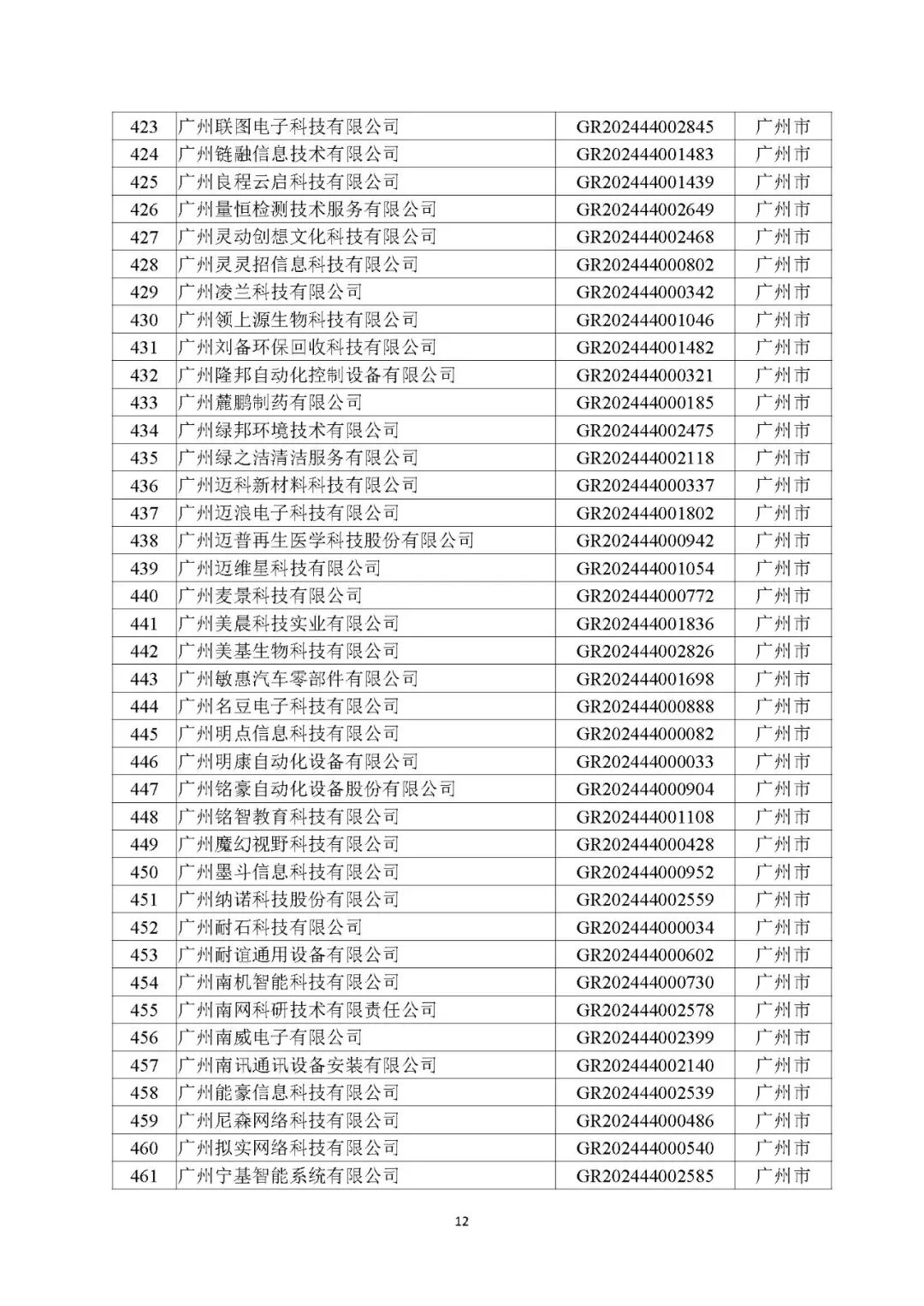 根据《科技部 财政部 国家税务总局关于修订印发〈高新技术企业认定管理办法〉的通知》(国科发火〔2016〕32号)和《科技部 财政部 国家税务总局关于修订印发〈高新技术企业认定管理工作指引〉的通知》(国科发火〔2016〕195号)有关规定,经企业申报,广东省高新技术企业认定管理工作领导小组办公室组织认定,并报全国高新技术企业认定管理工作领导小组办公室备案,2024年第一批2995家企业被认定为高新技术企业(名单见附件1)。请各有关单位做好高新技术企业证书发放工作,领取证书联系电话详见附件2。