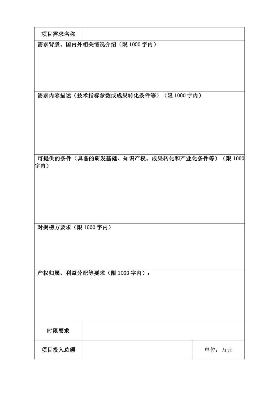 (四)项目榜单提出单位应明确项目指标参数、时限要求(项目实施周期一般不超过3年)、产权归属、资金投入及其他对揭榜方的条件要求等需求内容。