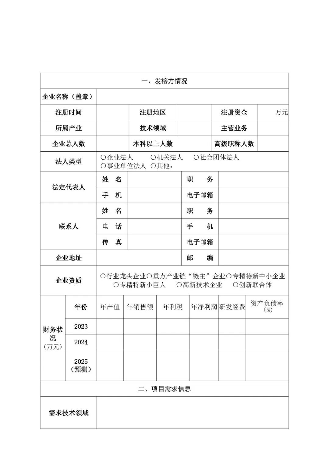 (一)项目榜单提出单位为项目“发榜方”,应为市内行业龙头企业、链主企业、专精特新企业、高新技术企业。