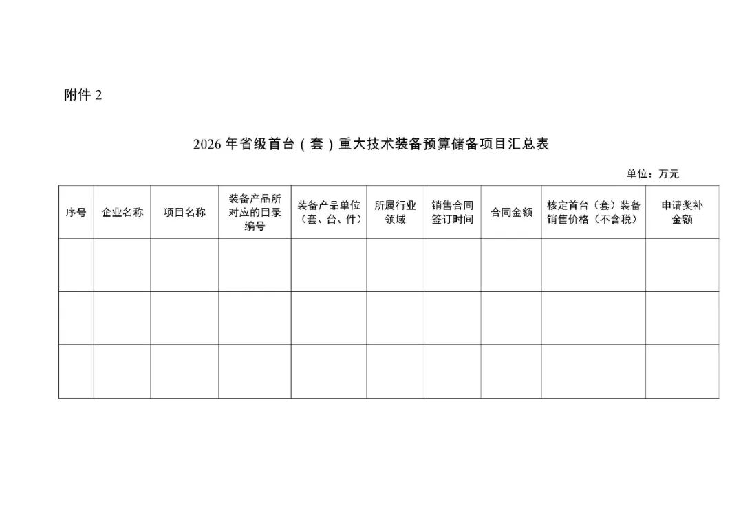 2. 2026年省级首台(套)重大技术装备预算储备项目汇总表