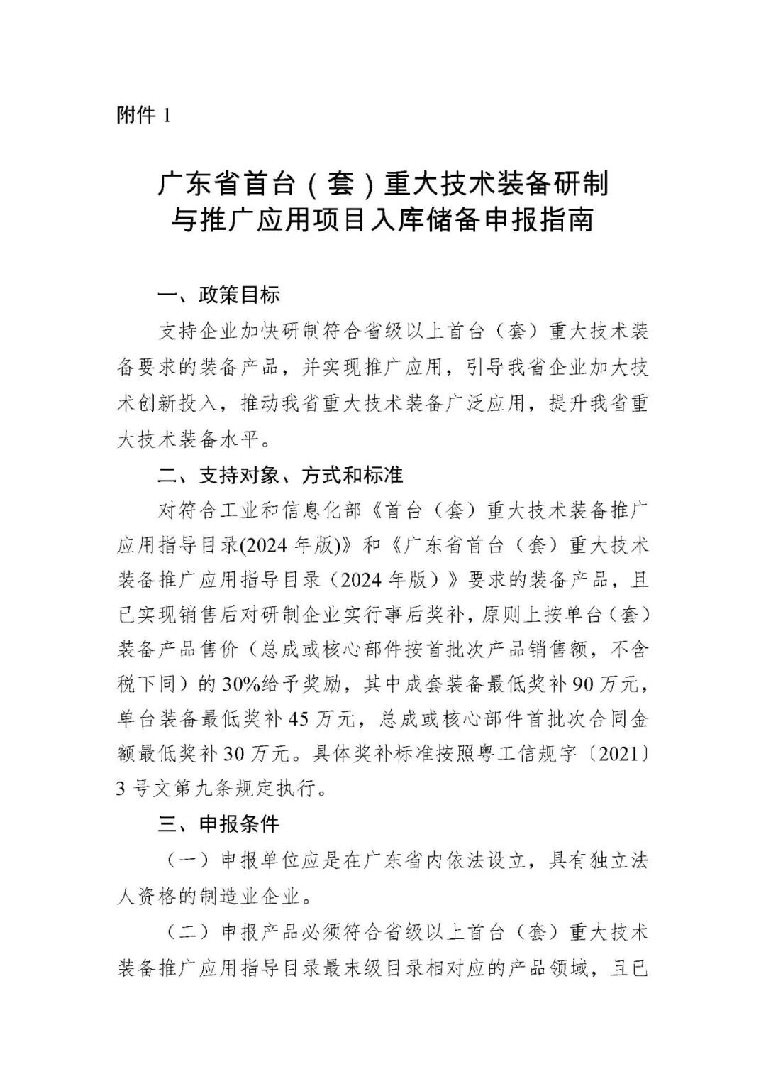 1. 广东省首台(套)重大技术装备研制与推广应用项目入库储备申报指南