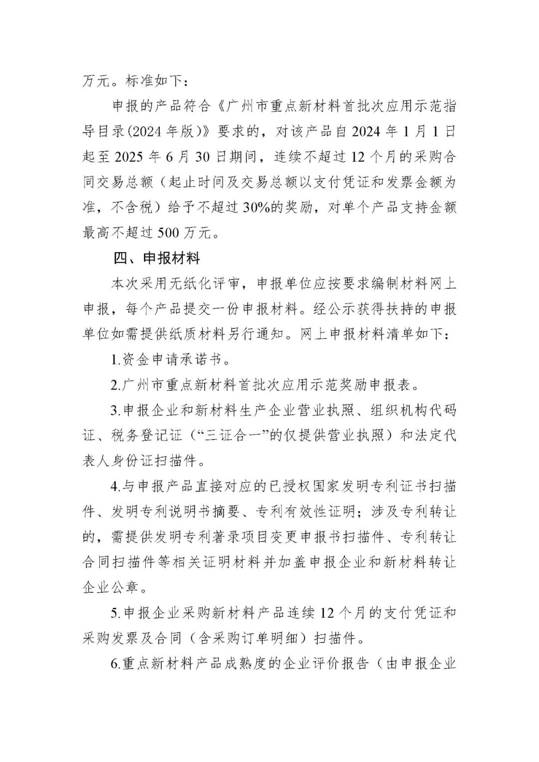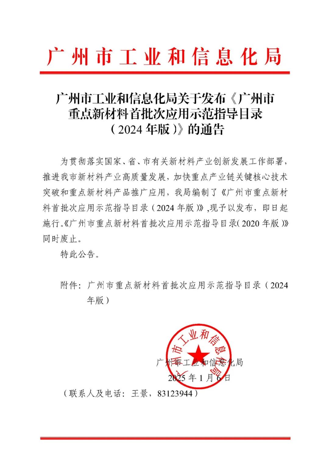 2.广州市工业和信息化局关于发布《广州市重点新材料首批次应用示范指导目录(2024年版)》的通告