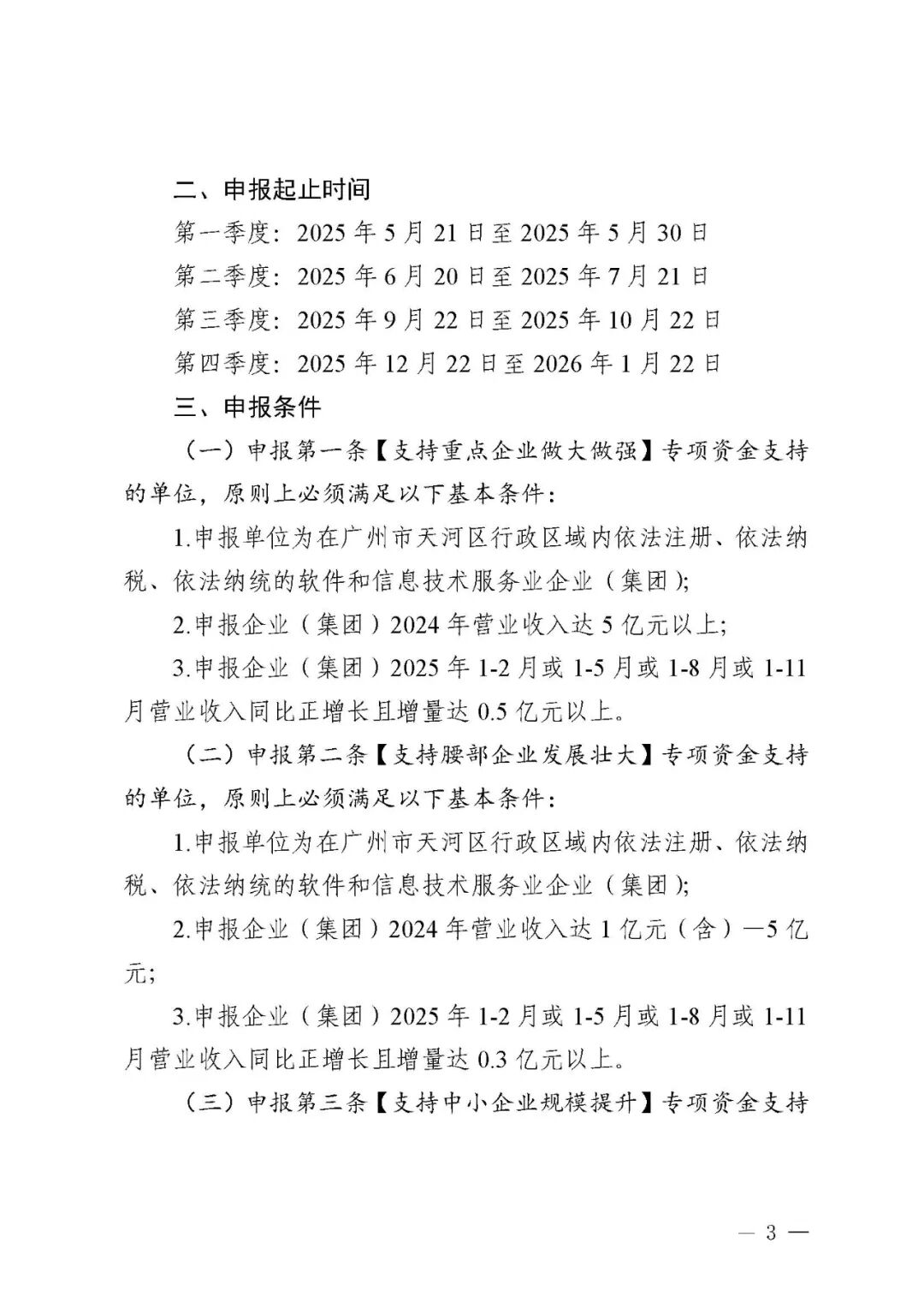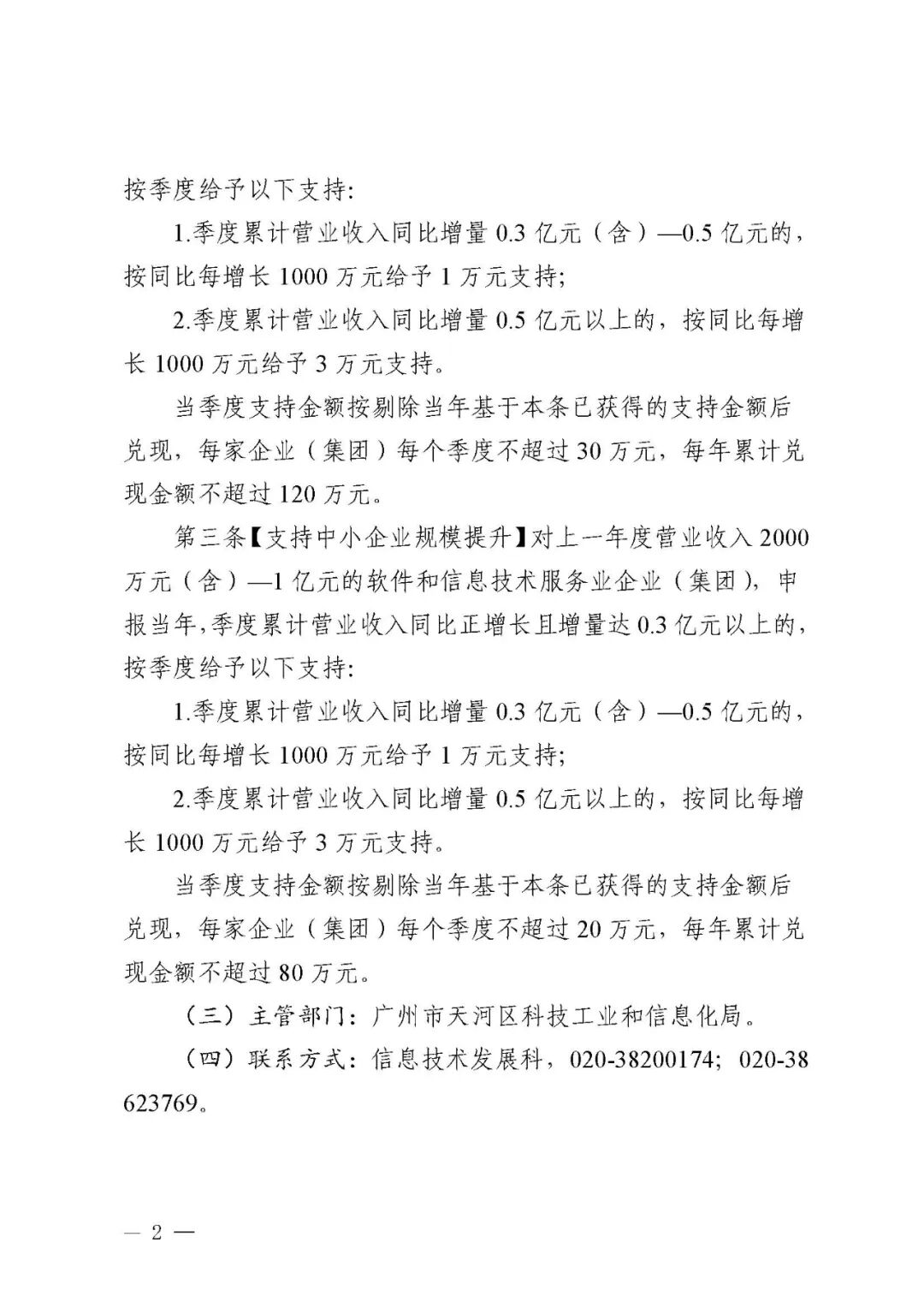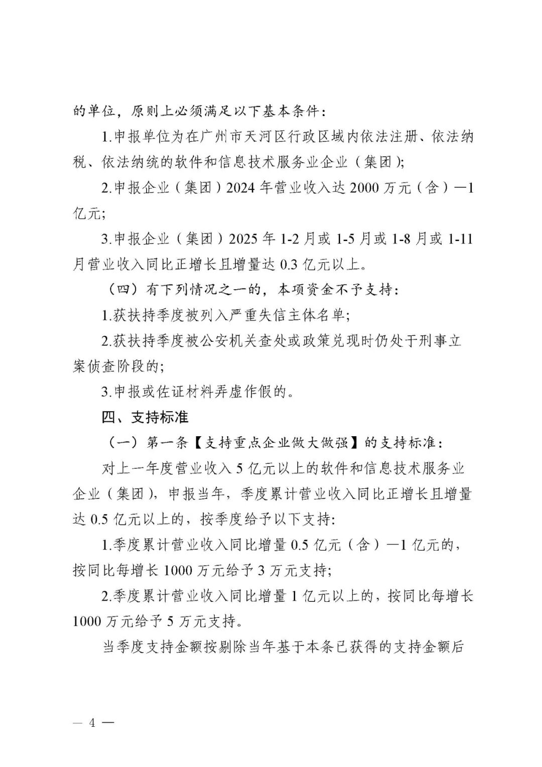《广州市天河区科技工业和信息化局关于印发广州市天河区加快推动软件和信息技术服务业高质量发展的若干政策措施的通知》(穗天科工信规字〔2025〕2号)(查看政策全文: https://www.gz.gov.cn/gfxwj/qjgfxwj/thq/qbm/content/post_10157794.html)