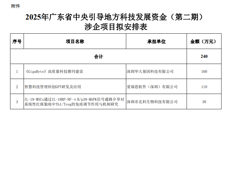 附件:2025年广东省中央引导地方科技发展资金(第二期)涉企项目拟安排表