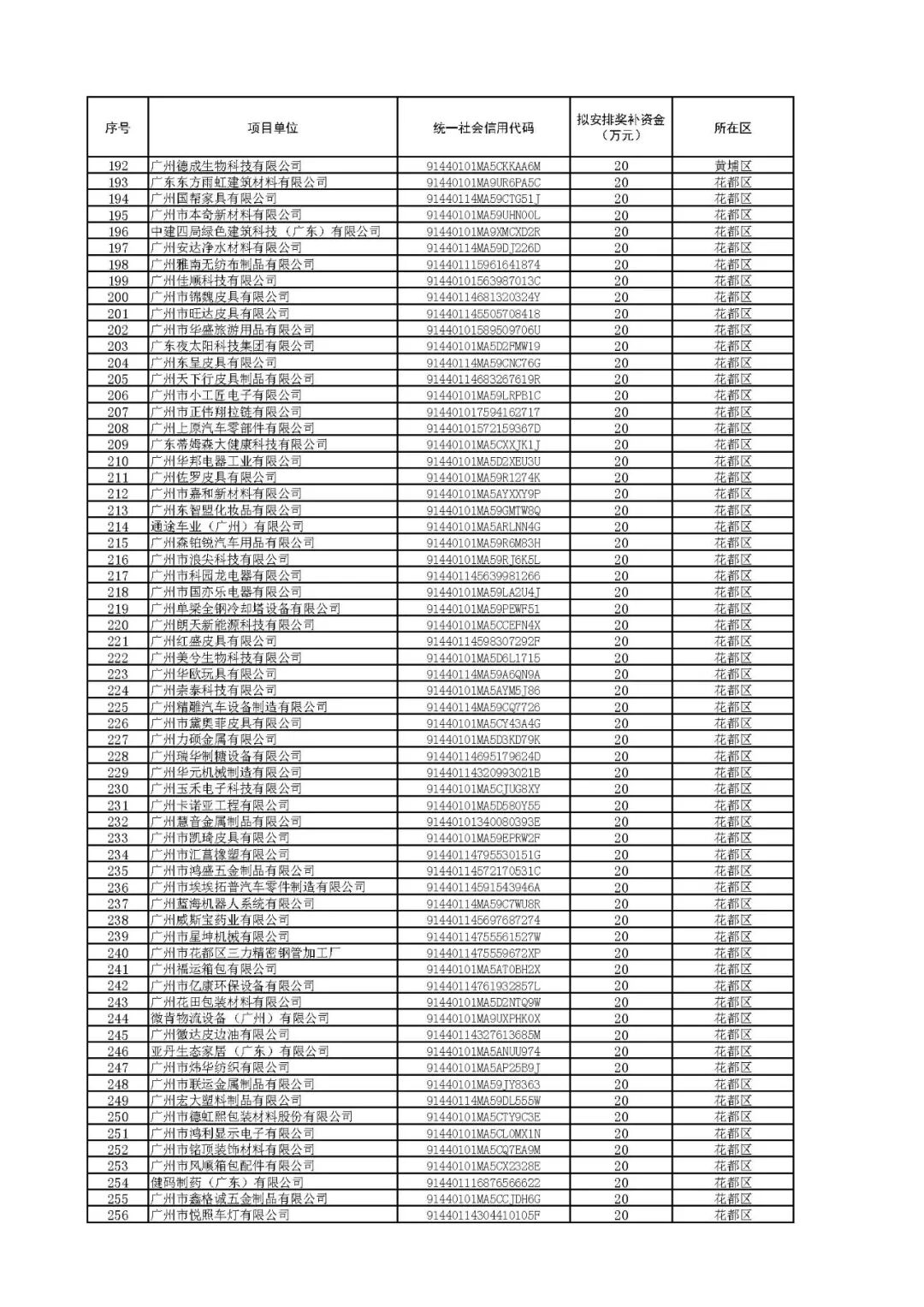 根据《广州市工业和信息化局关于促进小微工业企业上规模发展奖补政策的通知》(穗工信函〔2023〕272号),现将市级促进经济高质量发展专项资金(促进小微工业企业上规模)项目拟奖补企业(名单见附件1、2)予以公示。公示期:2025年5月28日至6月4日(5个工作日)。