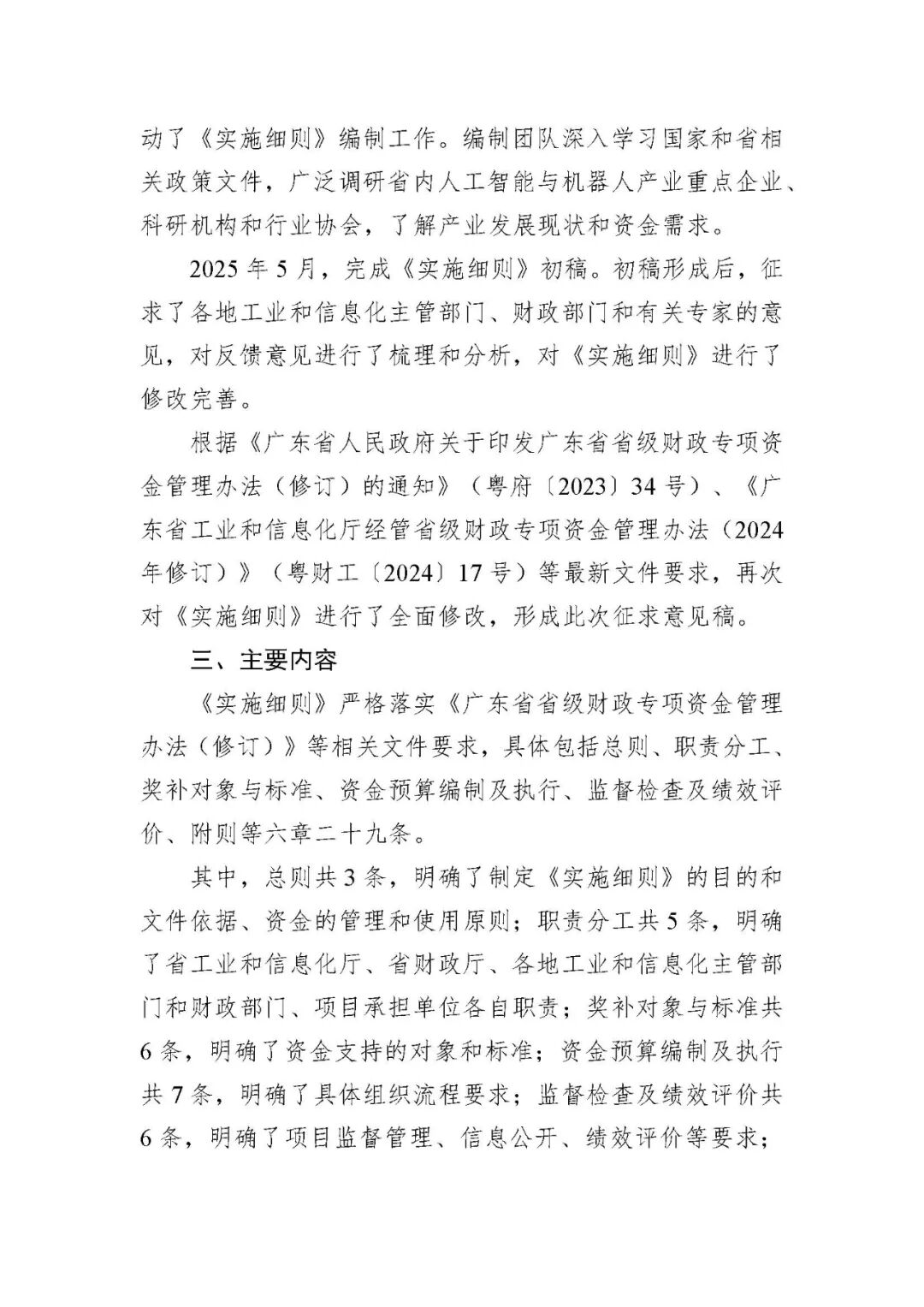 为贯彻省委、省政府关于加快人工智能与机器人产业创新发展有关部署,落实《广东省推动人工智能与机器人产业创新发展若干政策措施》(粤府办〔2025〕6号),规范专项资金管理,提高专项资金使用效益,省工业和信息化厅研究制订了《广东省工业和信息化厅关于人工智能与机器人产业创新发展有关资金管理实施细则(征求意见稿)》。