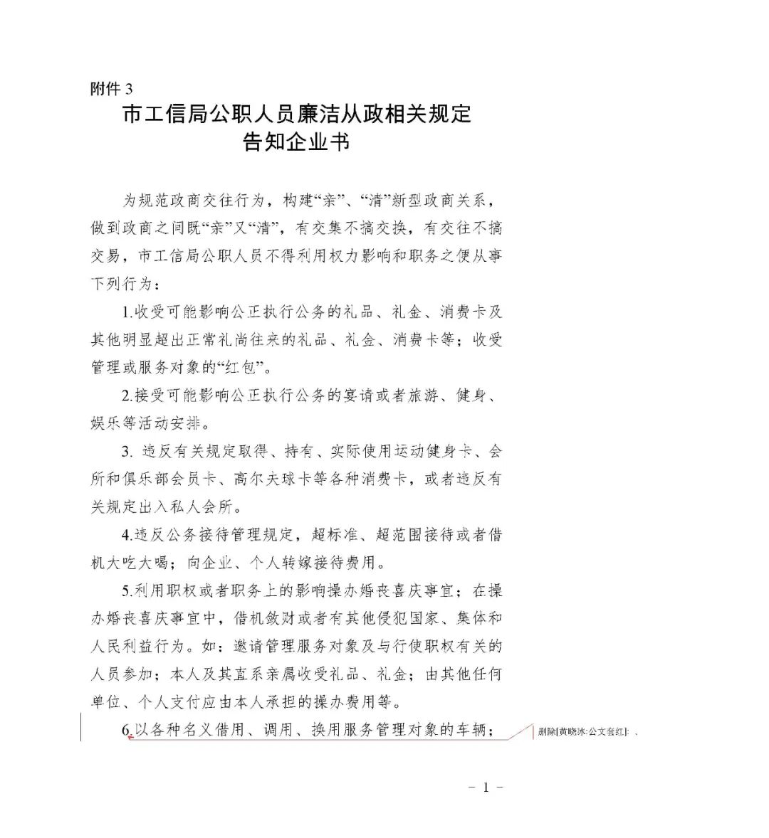 3.市工信局公职人员廉洁从政相关规定告知企业书
