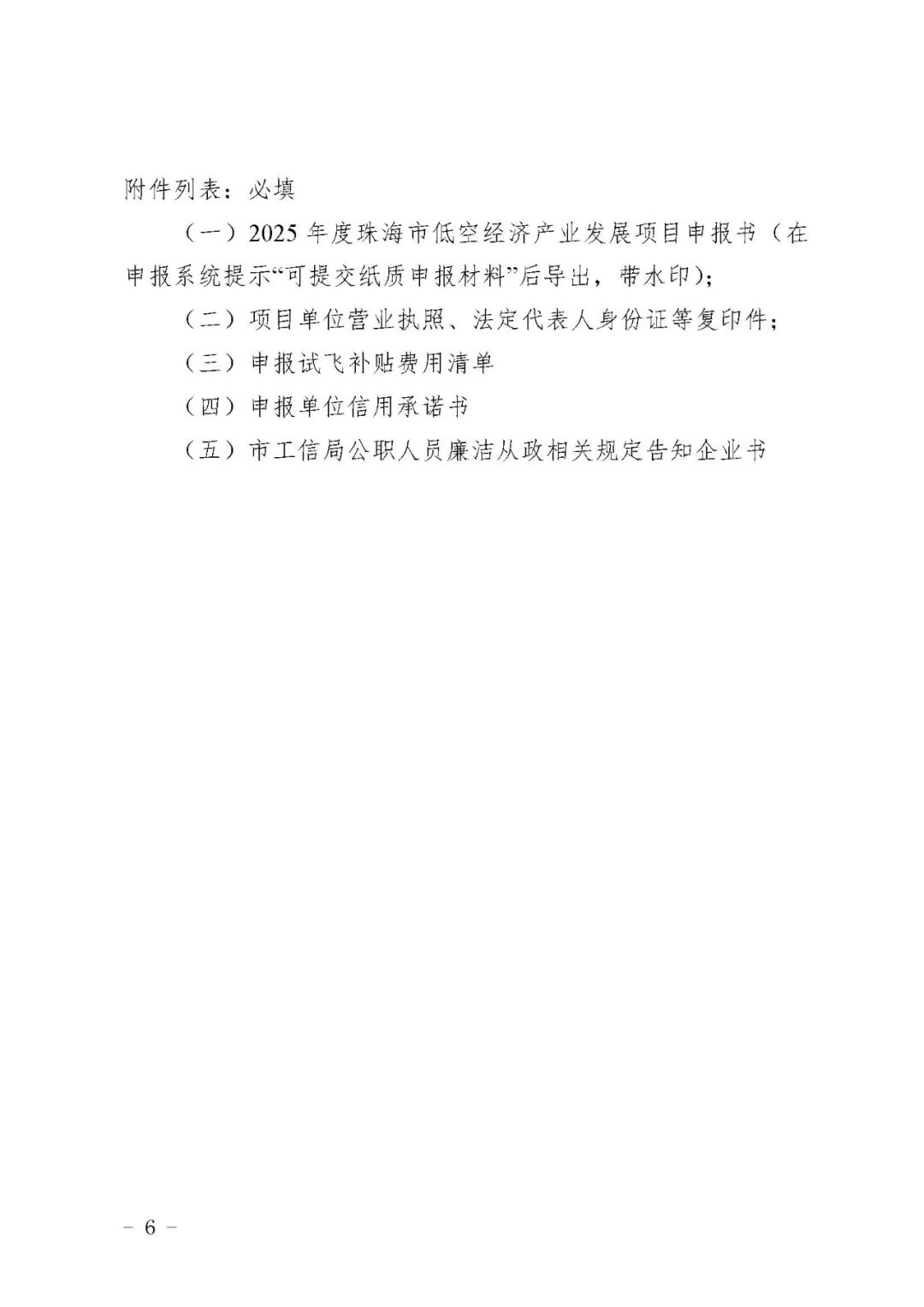 (一)2025年度珠海市低空经济产业发展项目申报书(在申报系统提示“可提交纸质申报材料”后导出,带水印)(见附件2);