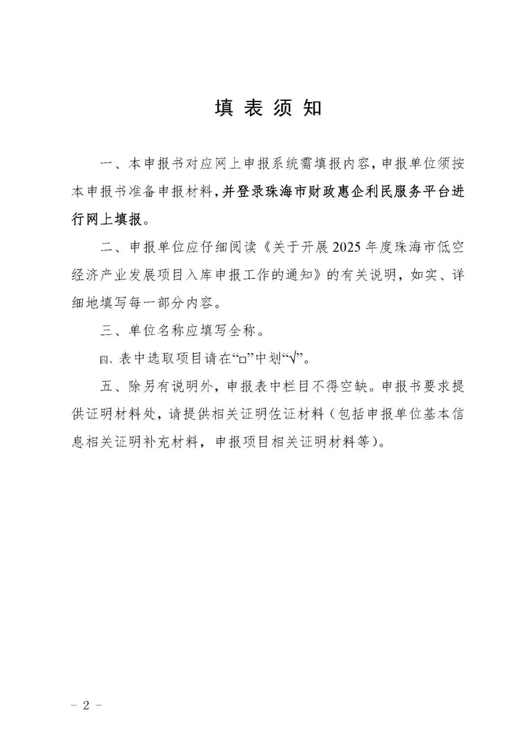 2.2025年度珠海市促进实体经济高质量发展专项资金(低空经济产业发展项目)申报书