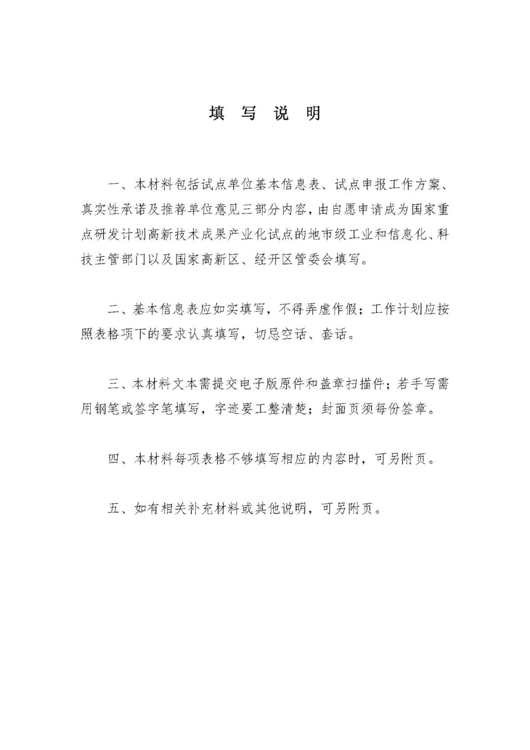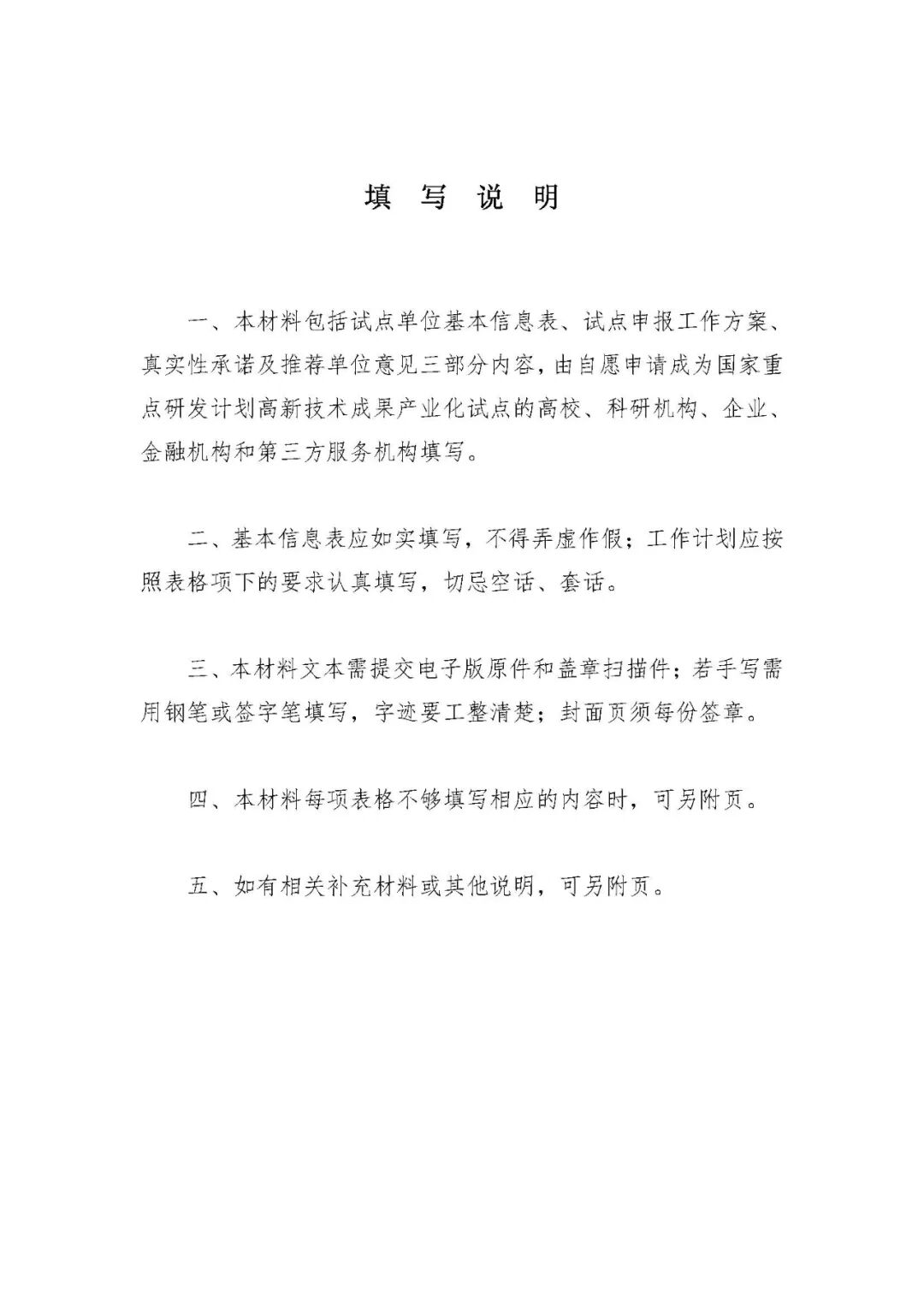 2.国家重点研发计划高新技术成果产业化试点申报书(产业化实施类/第三方服务类/金融服务类)