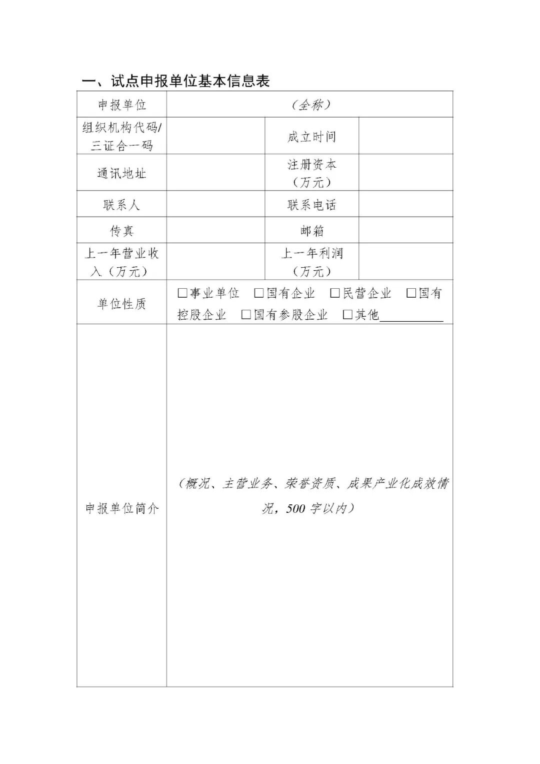 (二)试点单位。申报对象须在中华人民共和国境内注册、具备独立法人资格,无违法违纪、侵犯他人知识产权行为,无重大失信记录,有承担试点工作的保障机制和人员力量。按照在成果产业化工作中承担的角色不同,分为以下三类主体申报。