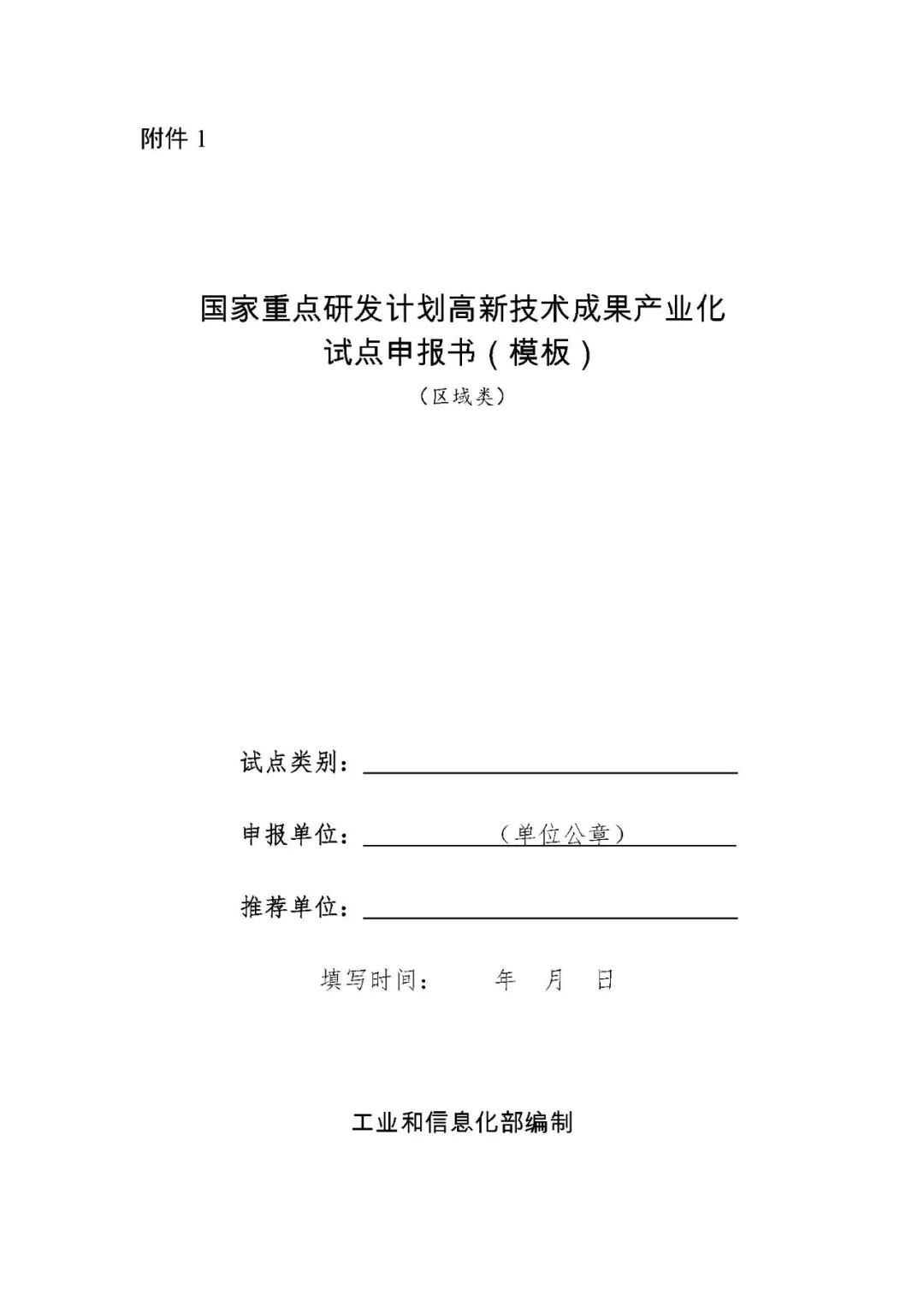 附件:1.国家重点研发计划高新技术成果产业化试点申报书(区域类)