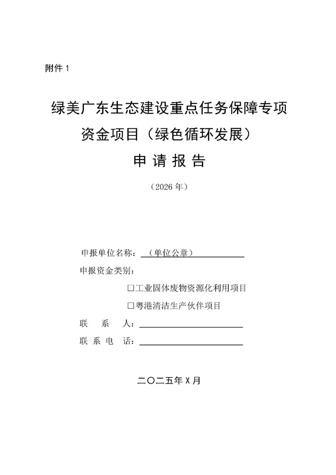1.2026年绿美广东生态建设重点任务保障专项资金项目(绿色循环发展)入库申请报告封面