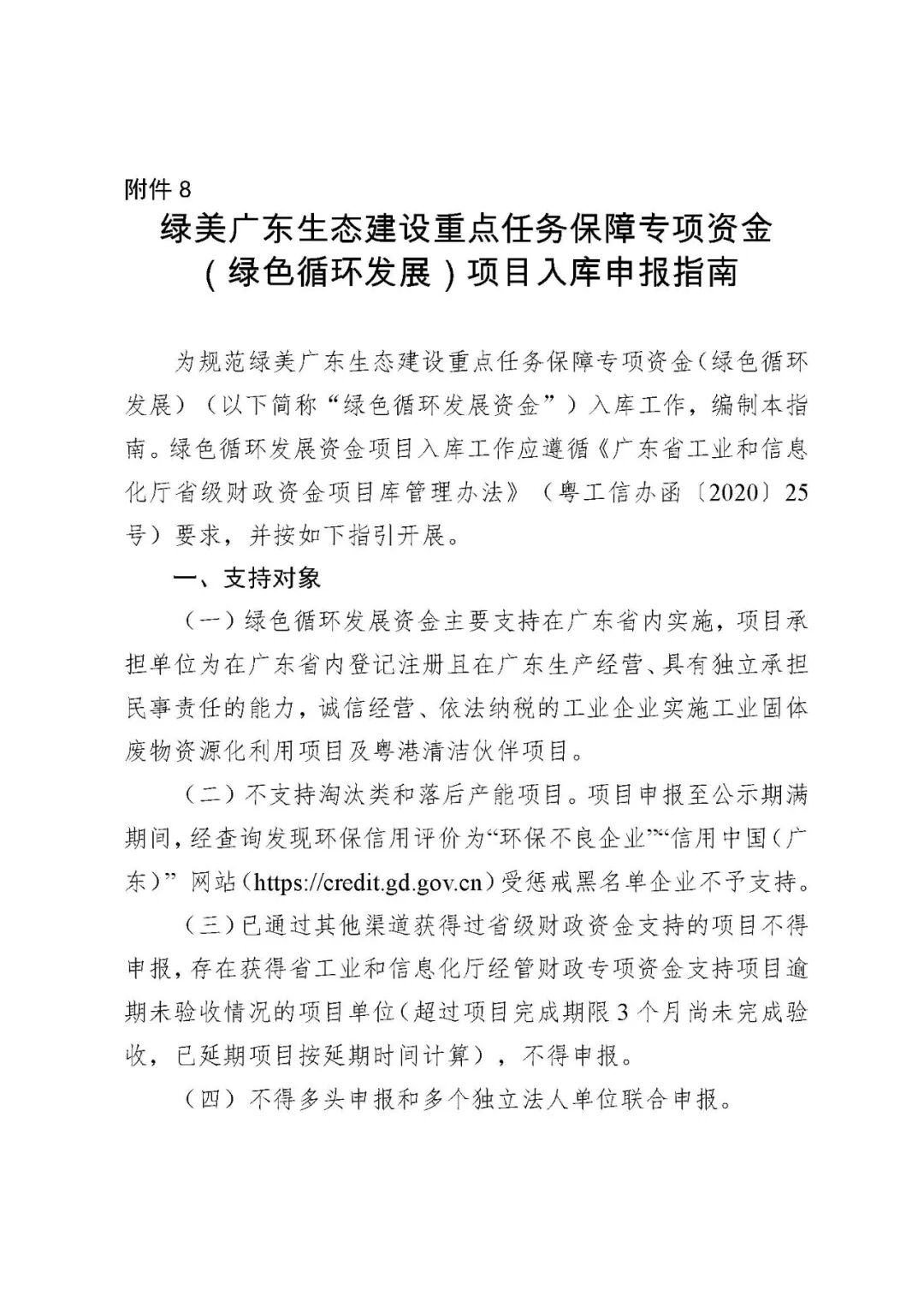 8.绿美广东生态建设重点任务保障专项资金(绿色循环发展)项目入库申报指南