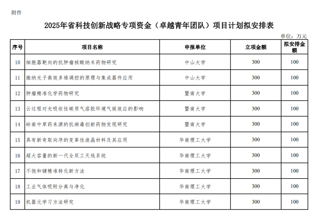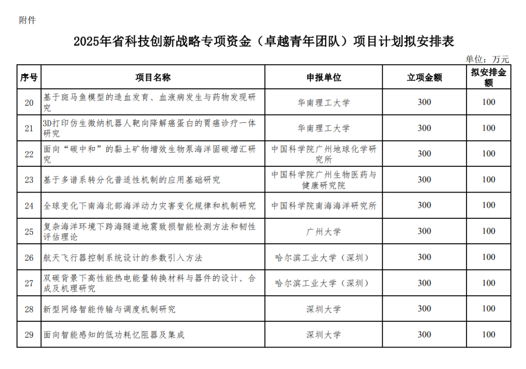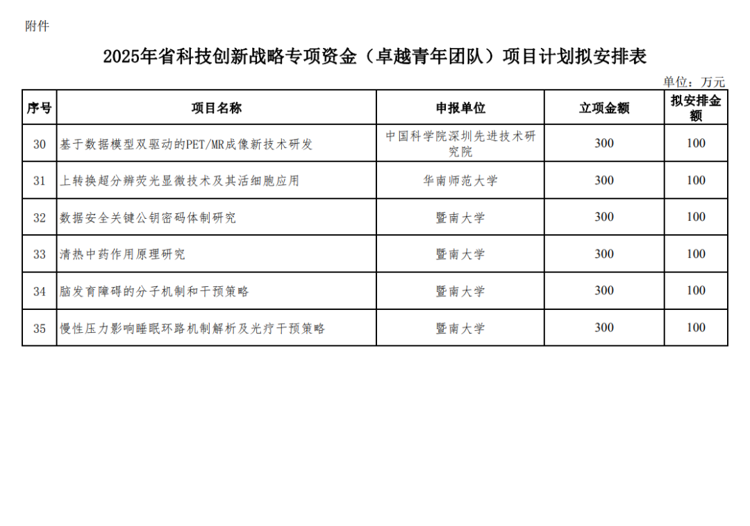 附 件:2025年省科技创新战略专项资金(卓越青年团队)项目计划拟安排表