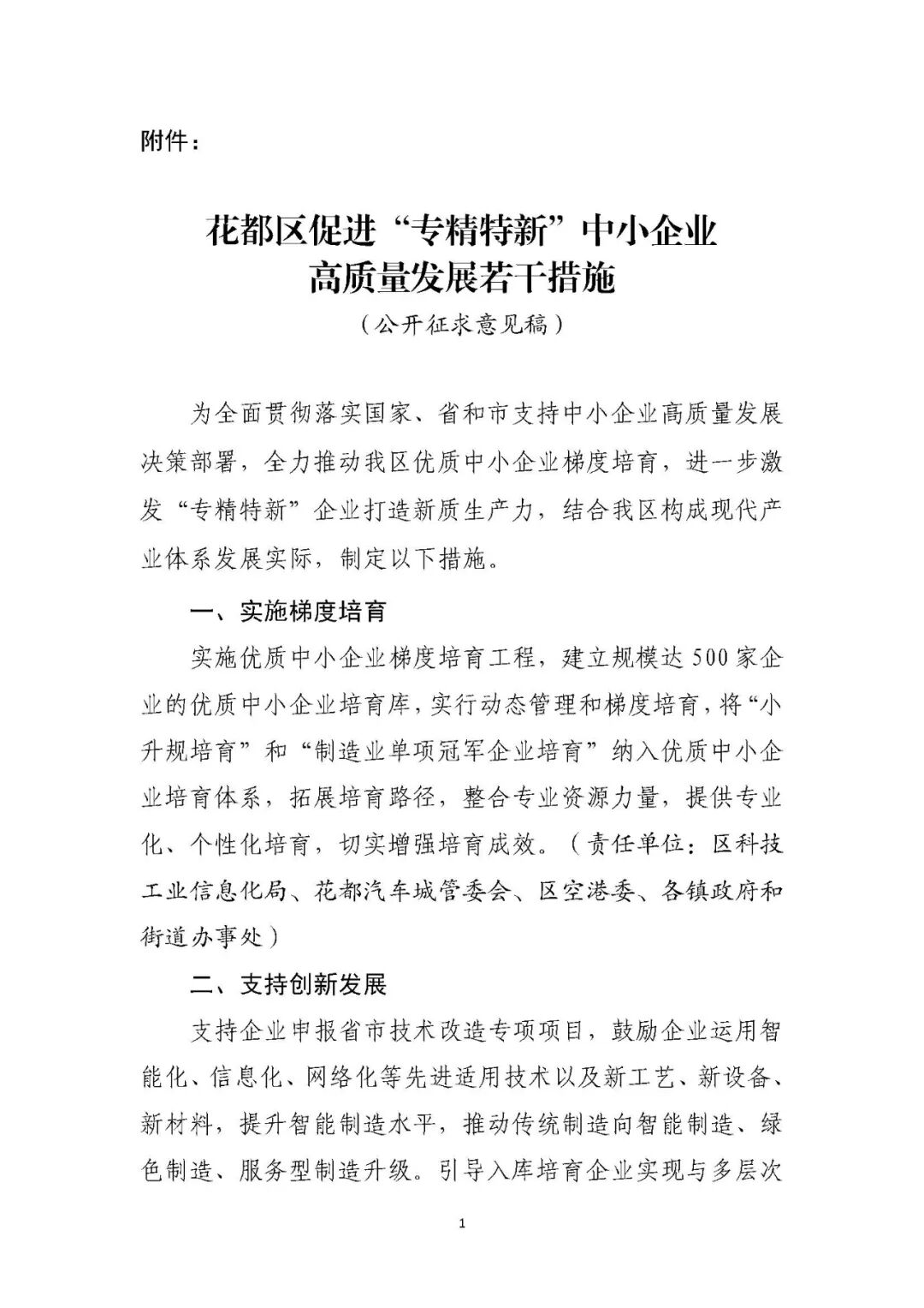 为贯彻习近平总书记关于培育一批“专精特新”中小企业的重要指示精神,协同做好国家、省、市级“专精特新”中小企业梯度培育工作,按照区领导要求,区科技工业信息化局起草了《花都区促进“专精特新”中小企业高质量发展若干措施》(见附件),现面向社会公开征求意见。