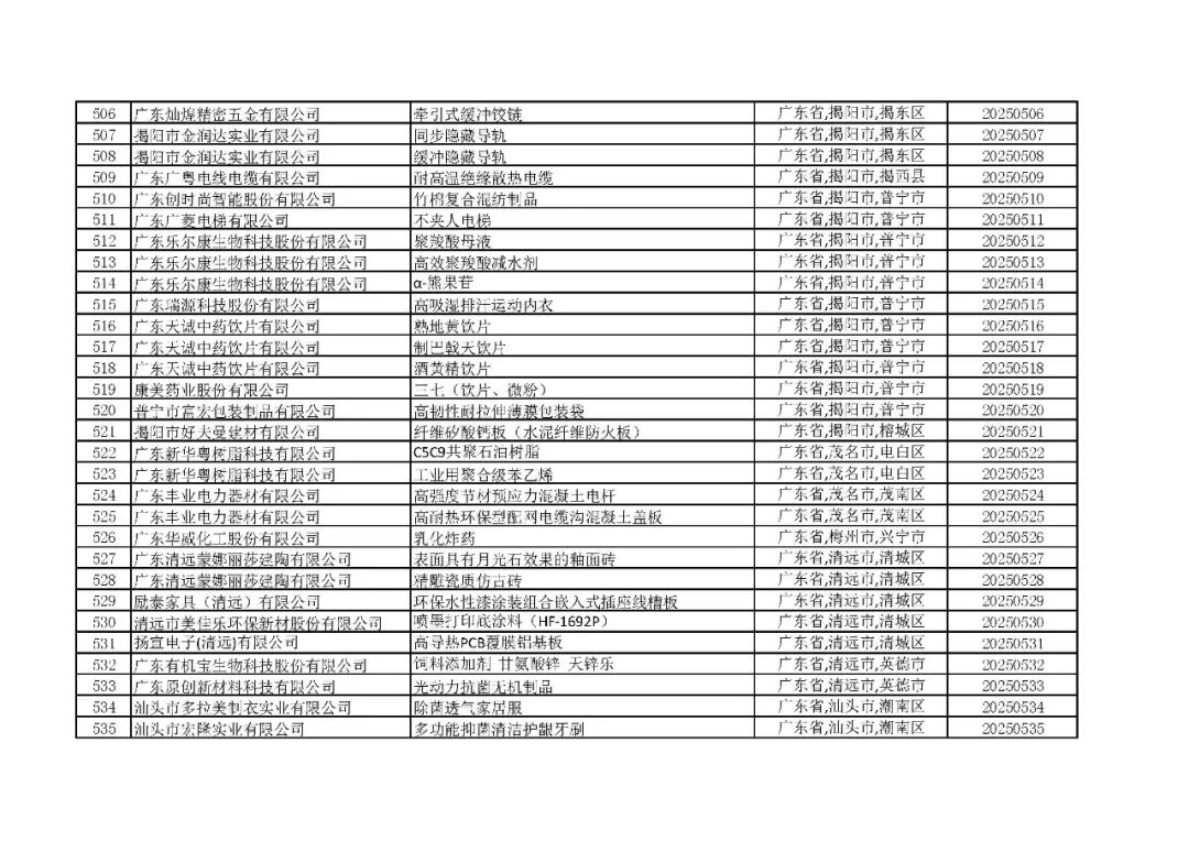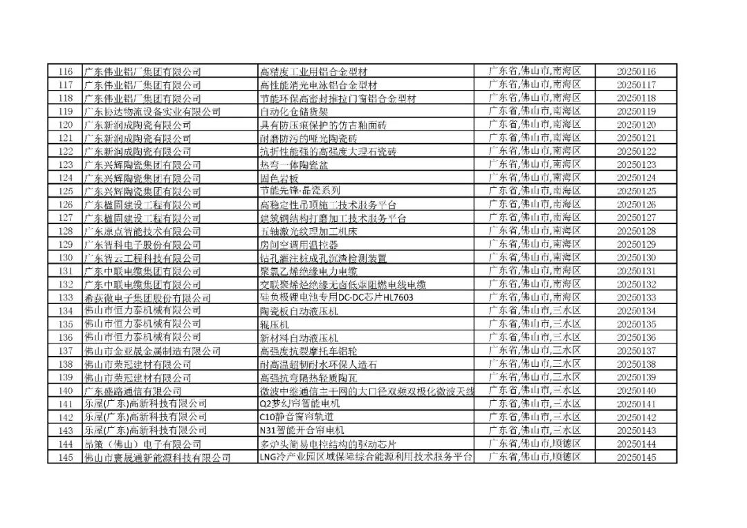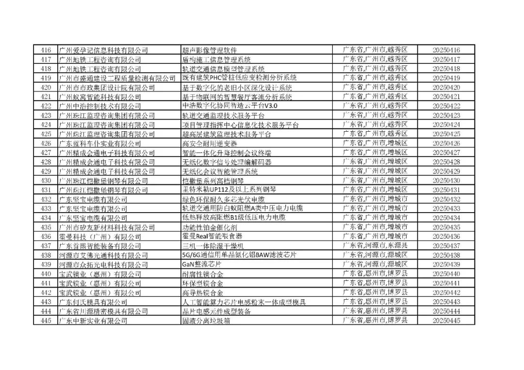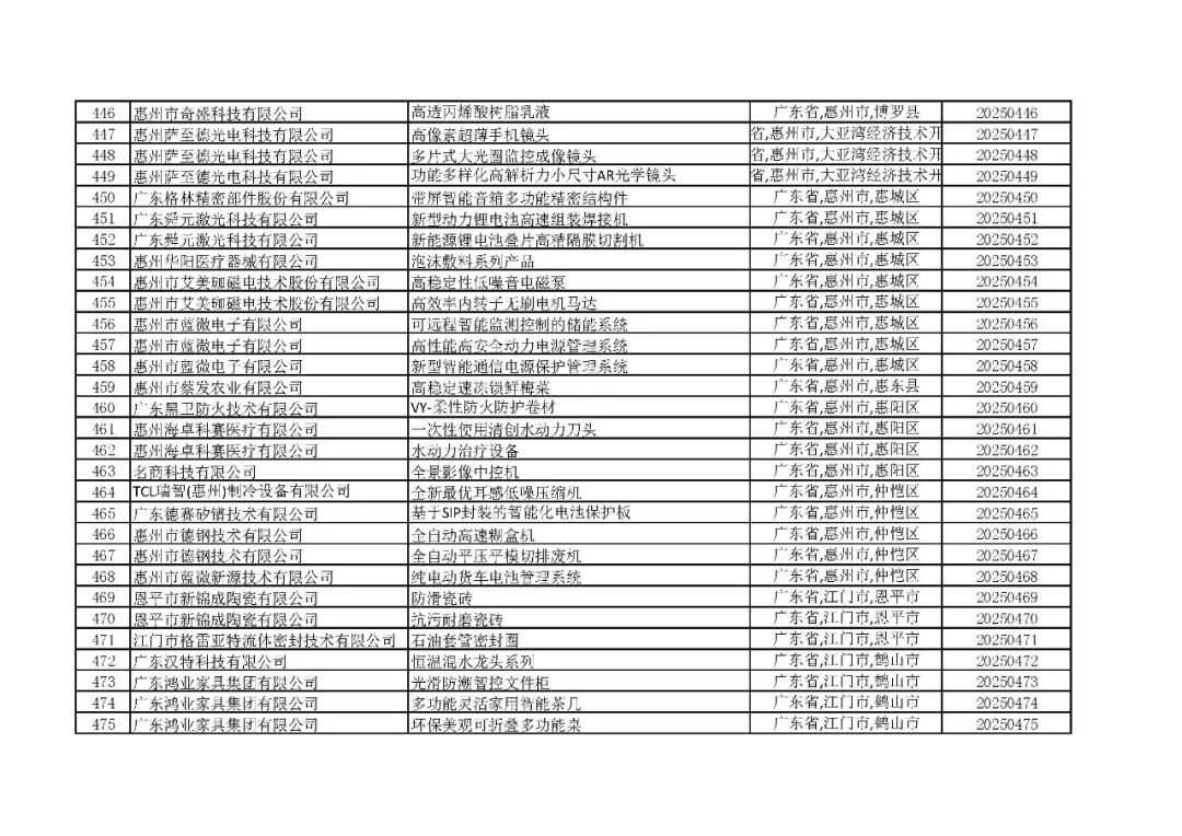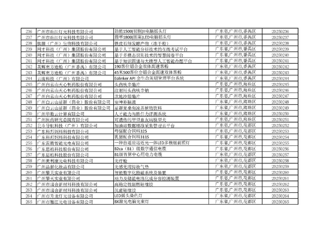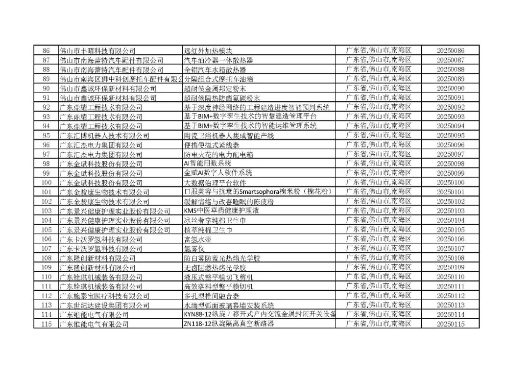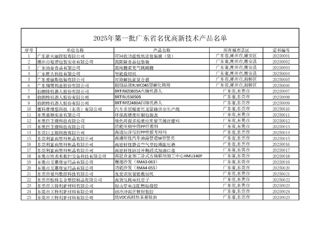 附件:2025年第一批广东省名优高新技术产品名单关于发放2025年第一批广东省名优高新技术产品证书的通知