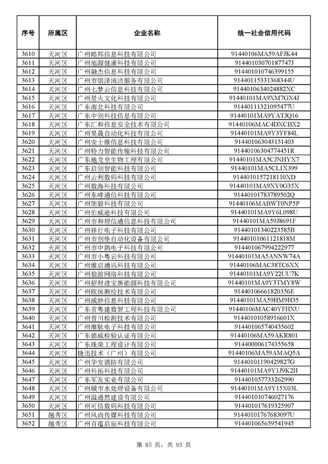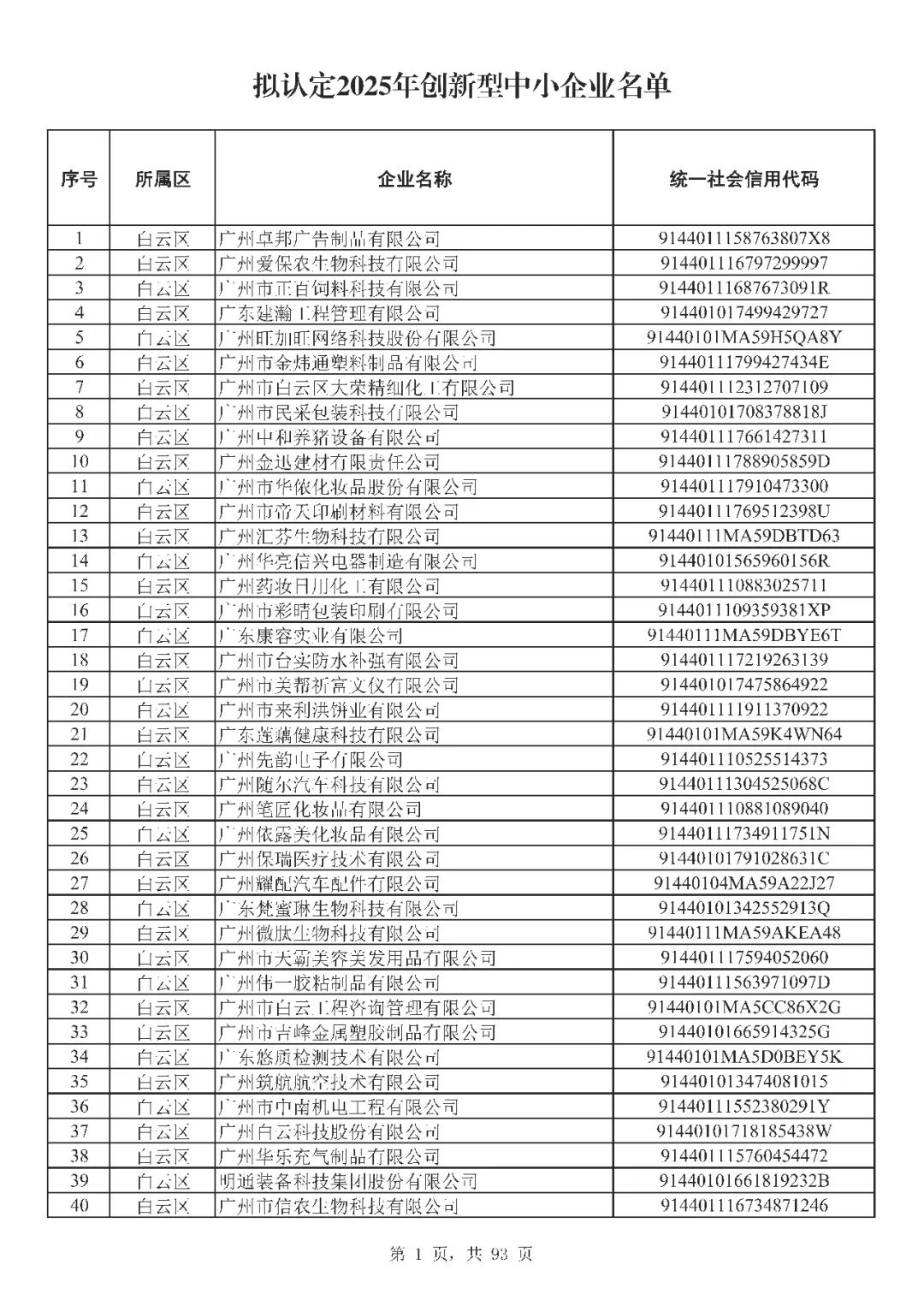 根据《广州市工业和信息化局关于组织开展2025年创新型中小企业评价(复核)和专精特新中小企业认定(复核)工作的通知》《广东省优质中小企业梯度培育管理实施细则》相关要求,我局按要求开展了2025年创新型中小企业评审工作,现将拟通过评价(复核)的2025年创新型中小企业名单予以拟公示,最终通过名单将在拟公示无异议后再行公示。