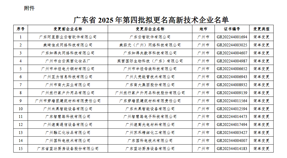 附件:广东省2025年第四批拟更名高新技术企业名单