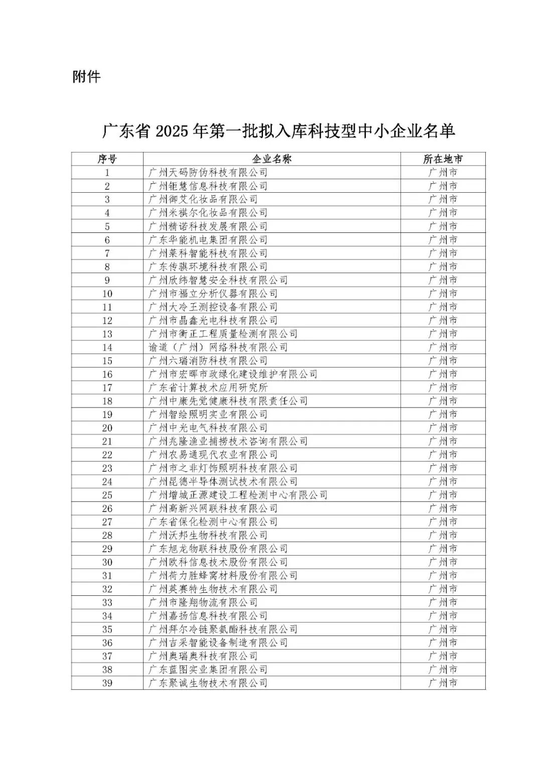 附件:广东省2025年第一批拟入库科技型中小企业名单