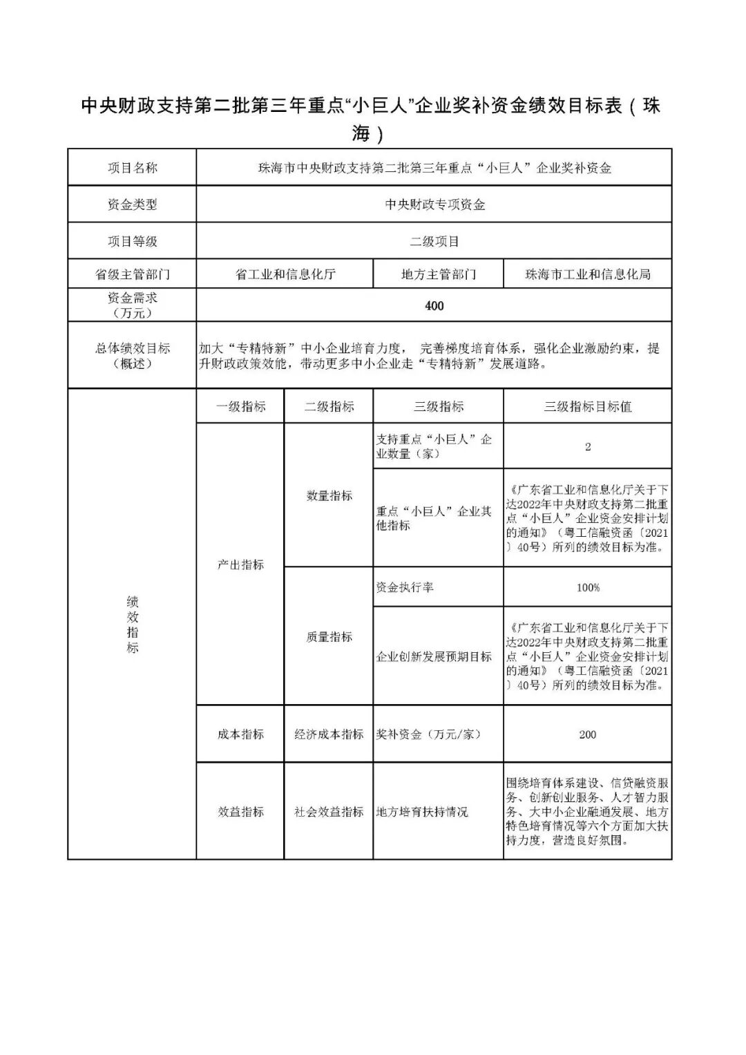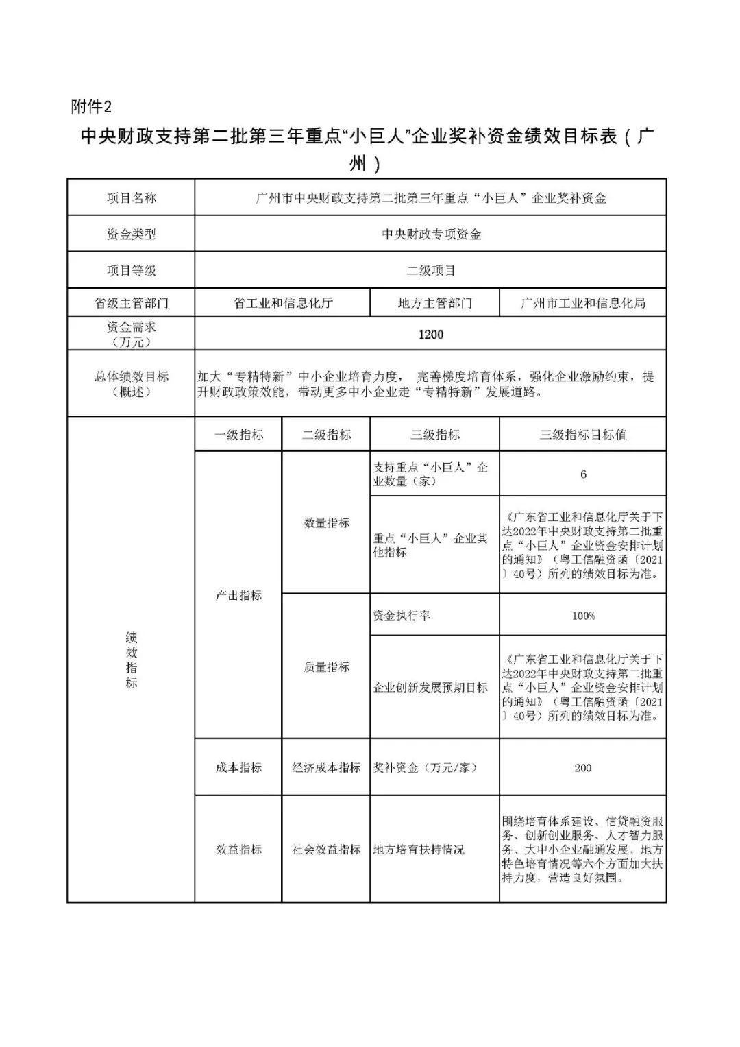 2. 中央财政支持第二批第三年重点“小巨人”企业奖补资金绩效目标表