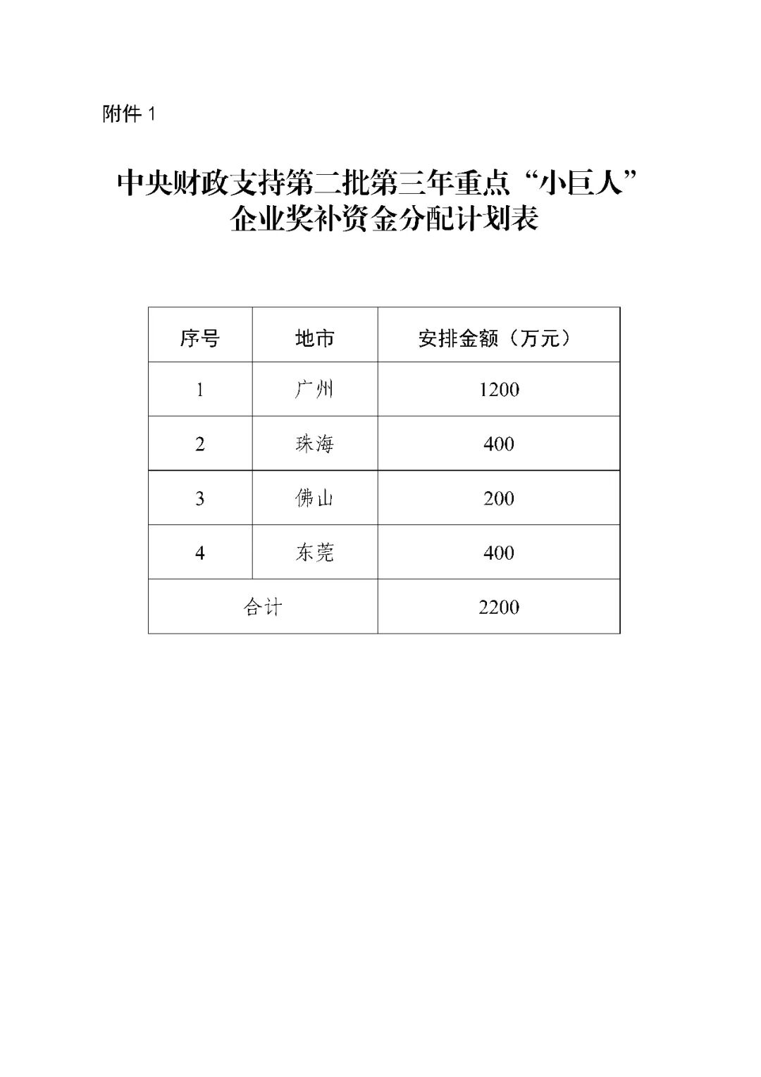 1. 中央财政支持第二批第三年重点“小巨人”企业奖补资金分配计划表
