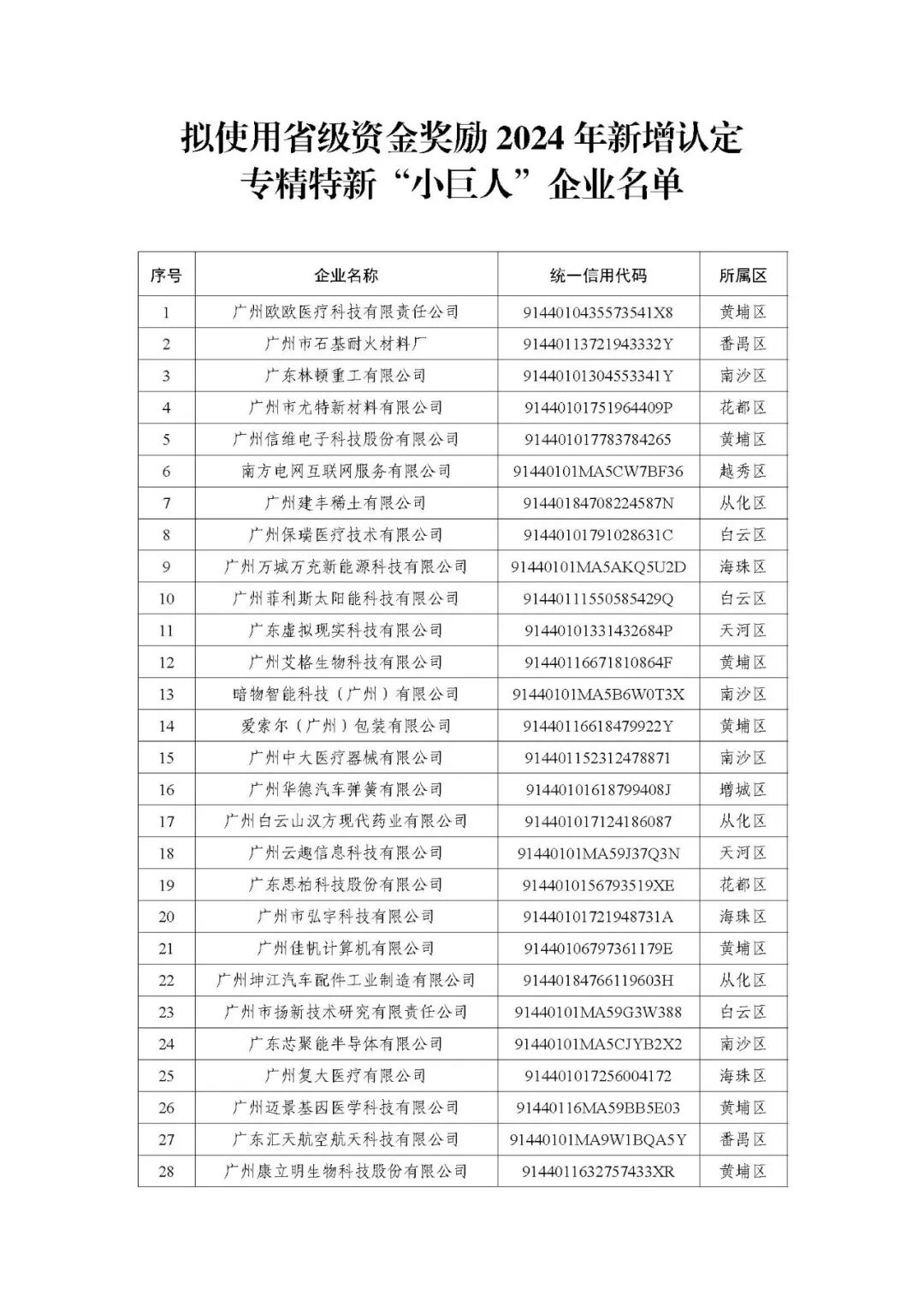 附件:拟使用省级资金奖励2024年新增认定专精特新“小巨人”企业名单