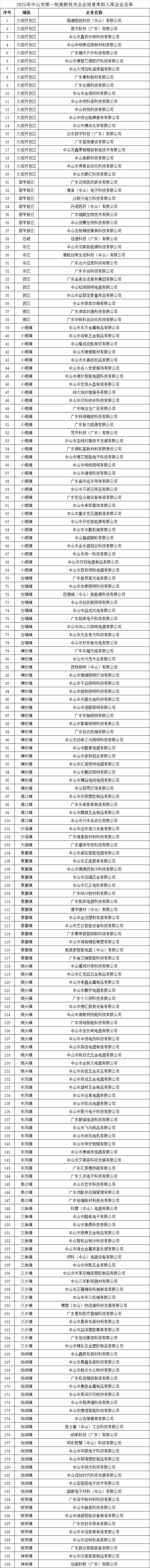 附件:2025年中山市第一批高新技术企业培育库拟入库企业名单