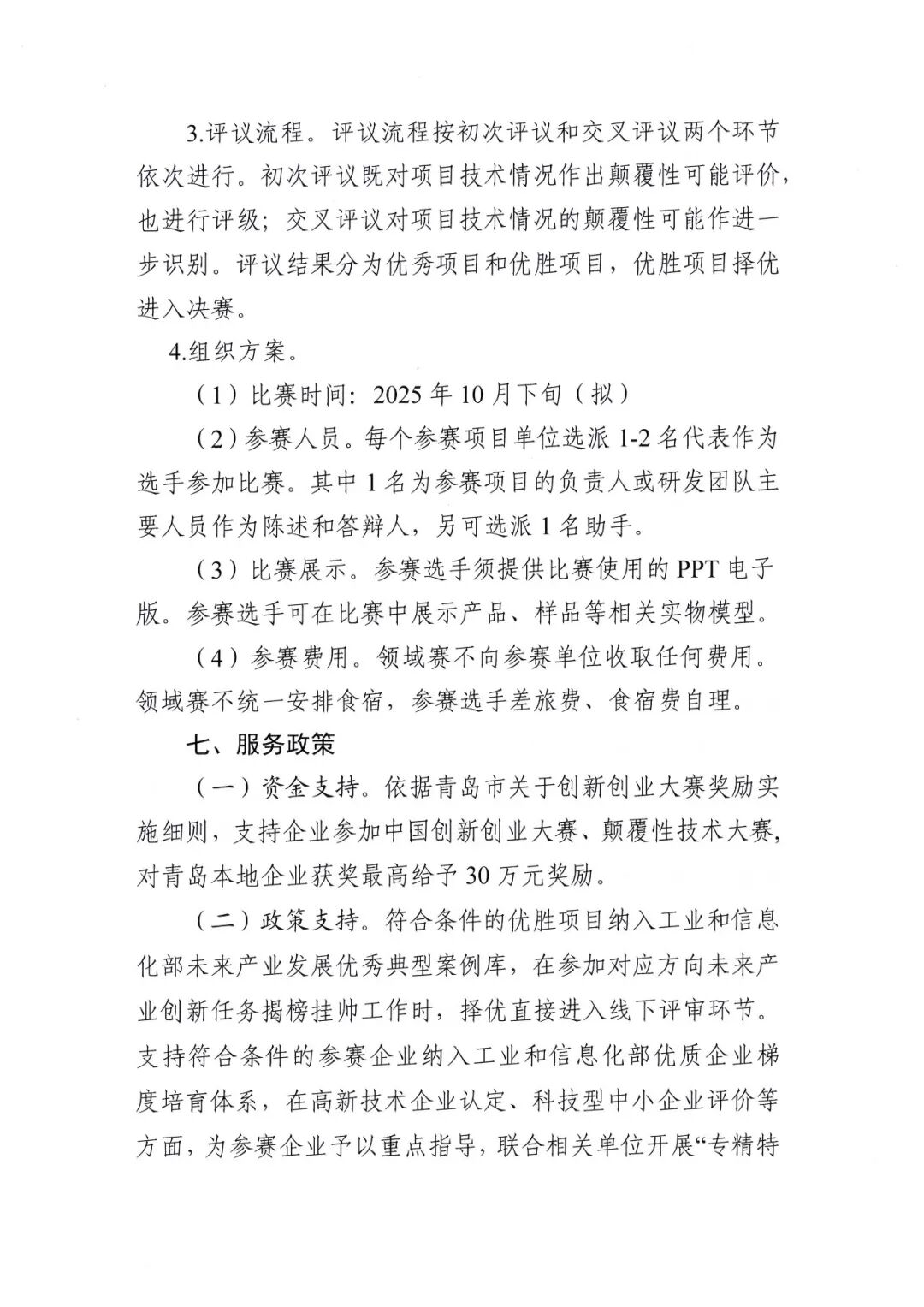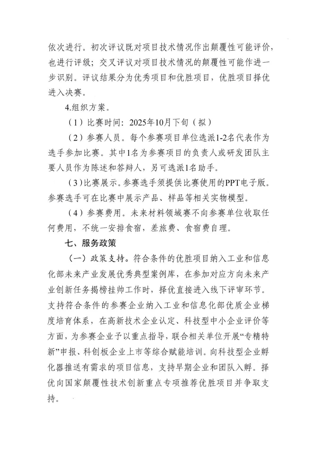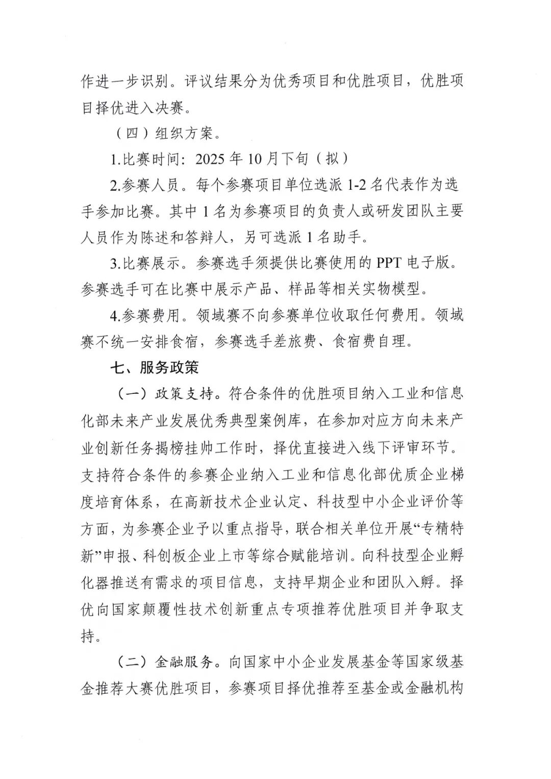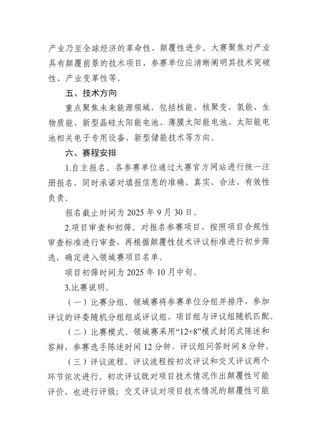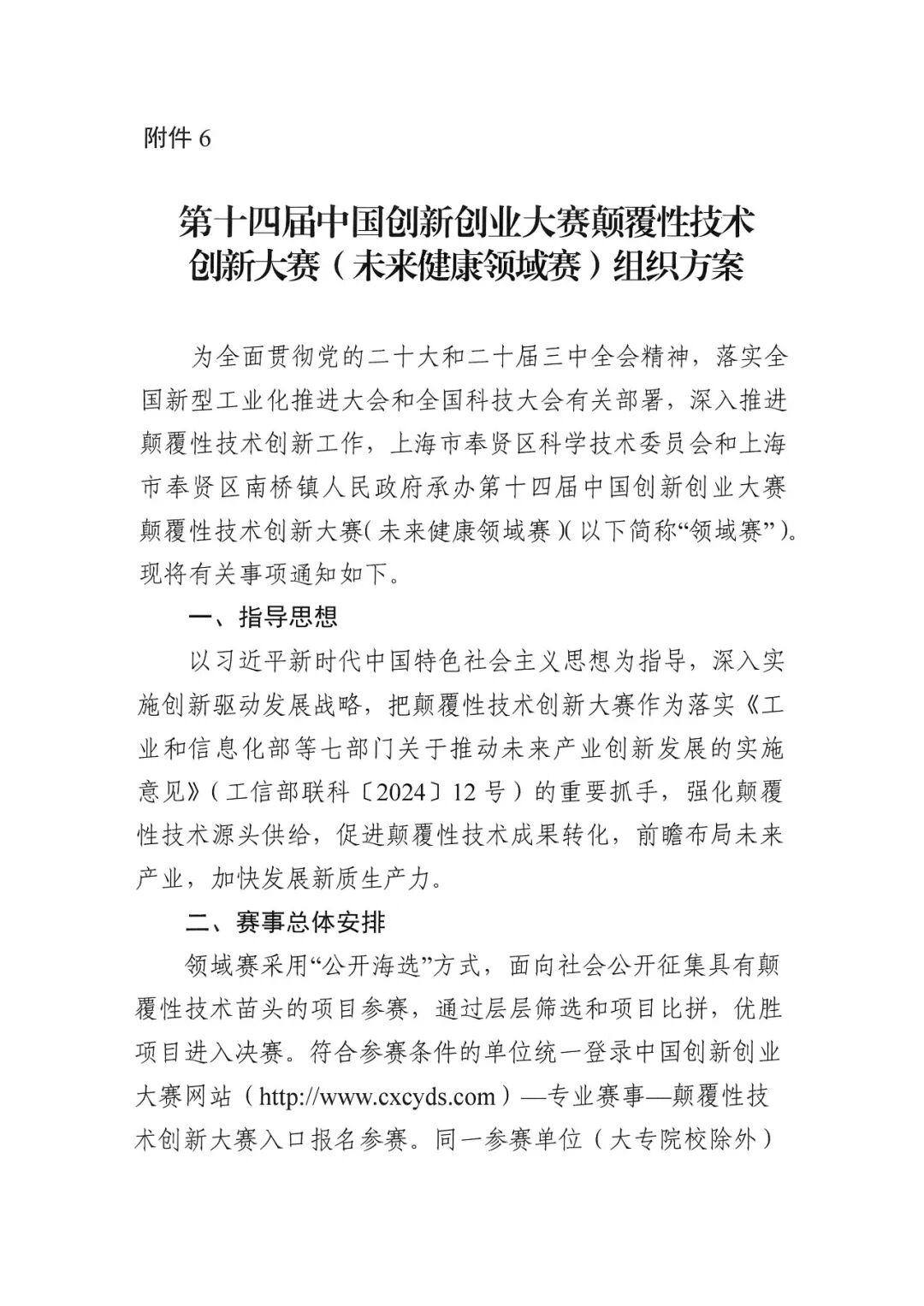 现转发工业和信息化部高技术产业开发中心《关于举办第十四届中国创新创业大赛颠覆性技术创新大赛领域赛的通知》(火炬〔2025〕33号),请各单位高度重视,积极发动本地区符合参赛条件的单位参赛,于2025年9月30日前登录中国创新创业大赛网站(http://www.cxcyds.com)颠覆性技术创新大赛入口完成报名。