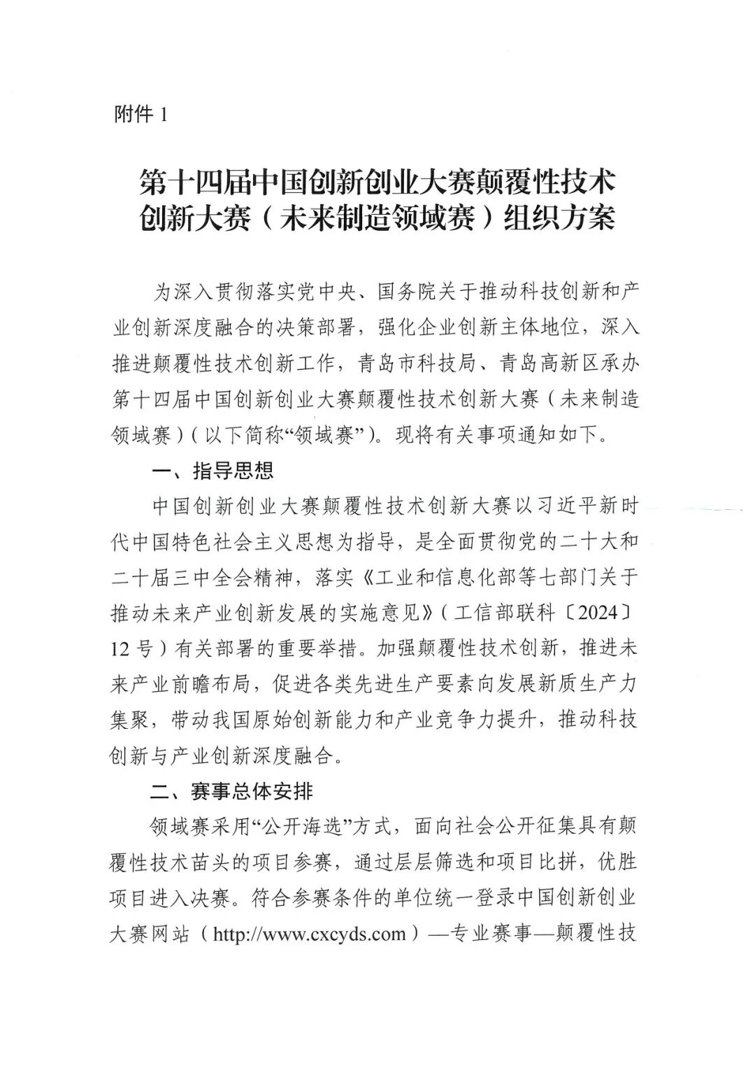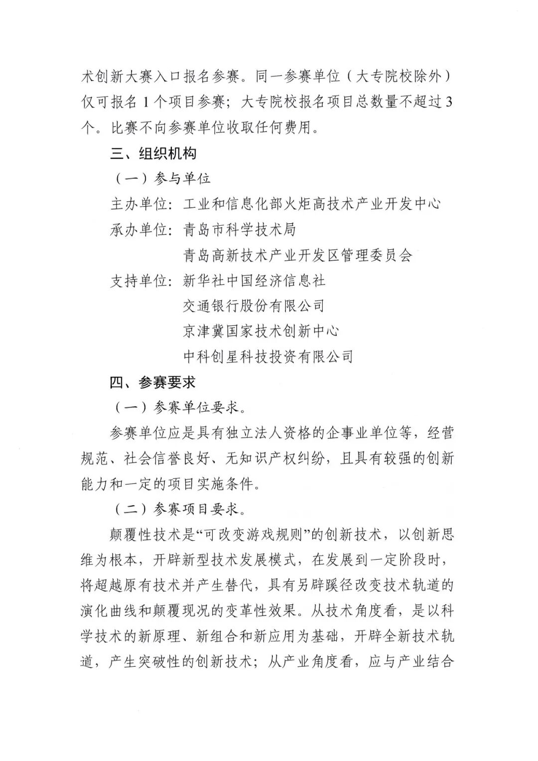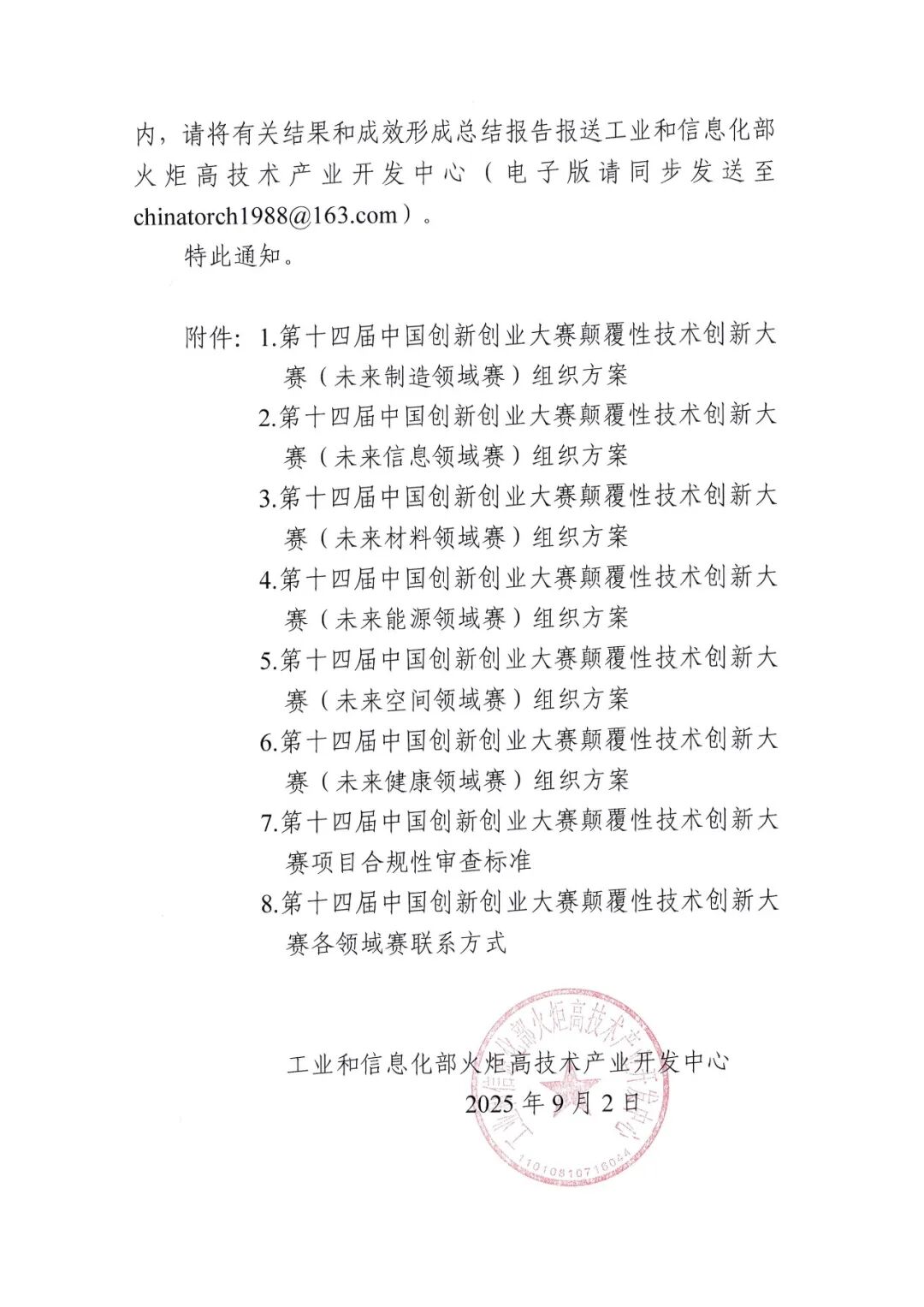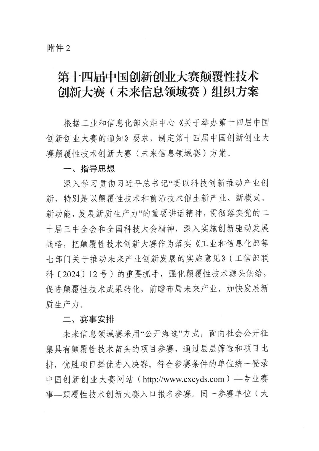 附件:工业和信息化部高技术产业开发中心《关于举办第十四届中国创新创业大赛颠覆性技术创新大赛领域赛的通知》