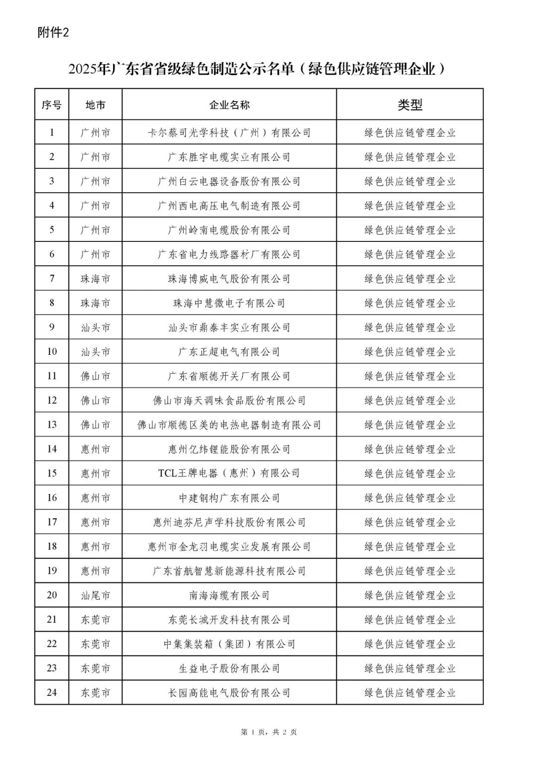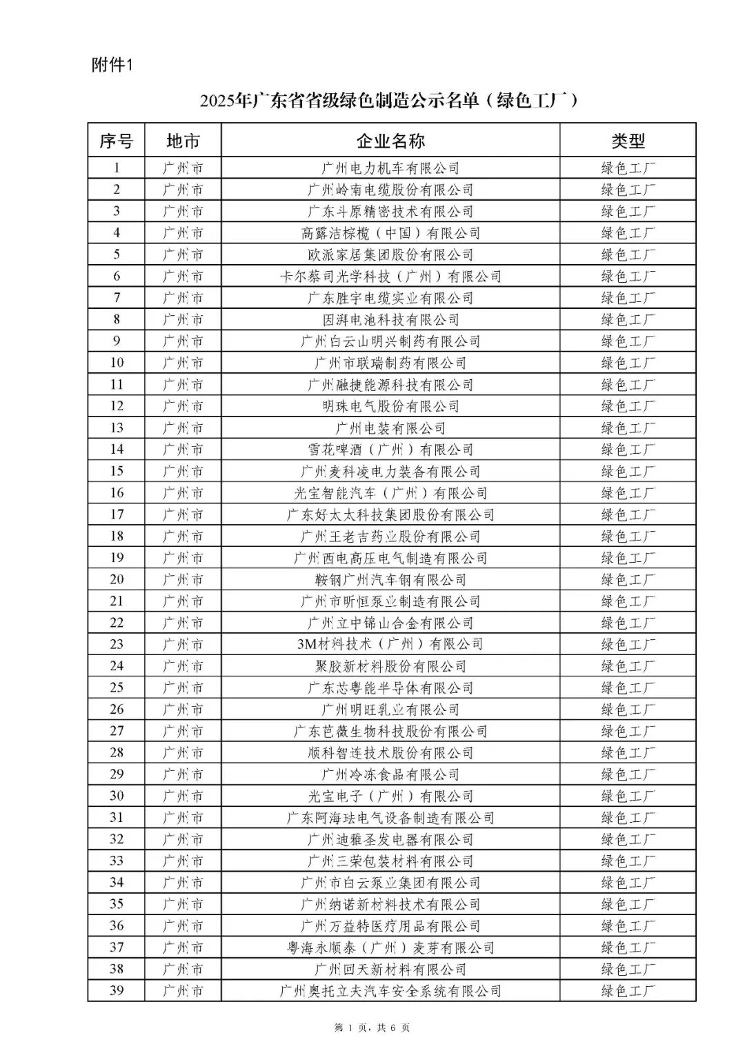 根据工业和信息化部《绿色工厂梯度培育及管理暂行办法》和《广东省绿色工厂梯度培育管理实施细则》,经企业(园区)自愿申报、专家评审,择优确定,现将广东省2025年度绿色制造名单予以公示。