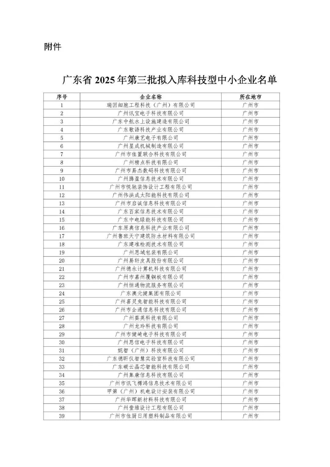 附件:广东省2025年第三批拟入库科技型中小企业名单