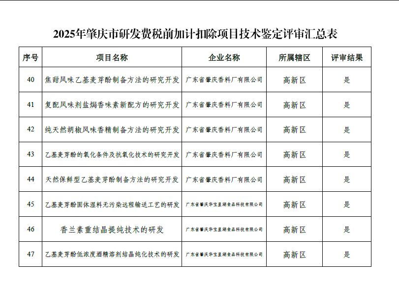附件:2025年肇庆市研发费税前加计扣除项目技术鉴定评审汇总表