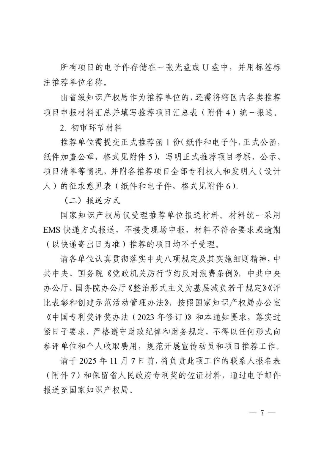 三、通过省局报送的其他渠道名额的项目,请各市局于2025年12月22日前,将报送函(列明项目清单及150字以内项目优势)及项目资料(含项目公示情况,使用院士、全国性行业协会推荐名额的还需提交推荐意见书)汇总存入一张光盘或U盘,连同报送函纸件、推荐意见书原件报送省局(地址同上)。